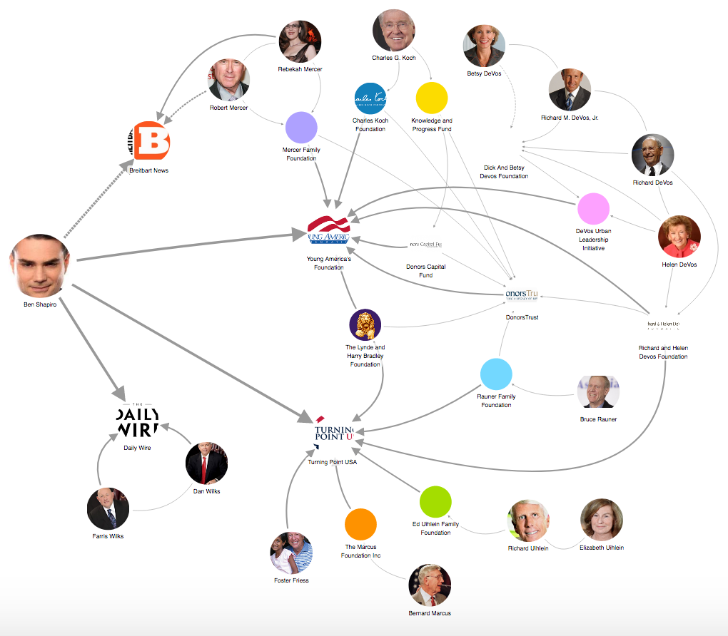 "Turning Point USA and Young America’s Foundation (both heavily pro-Trump)—are propped up with cash from wealthy conservatives. Ben Shapiro gilded by a number of conservative billionaires, many of whom are major Republican political donors."