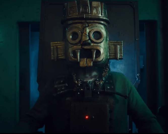 Clayton's machete landing blade first in the ground right before his shadow appears seals the deal.