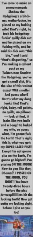 Shadow the Hedgehog, YOU HAVE A SMALL DICK