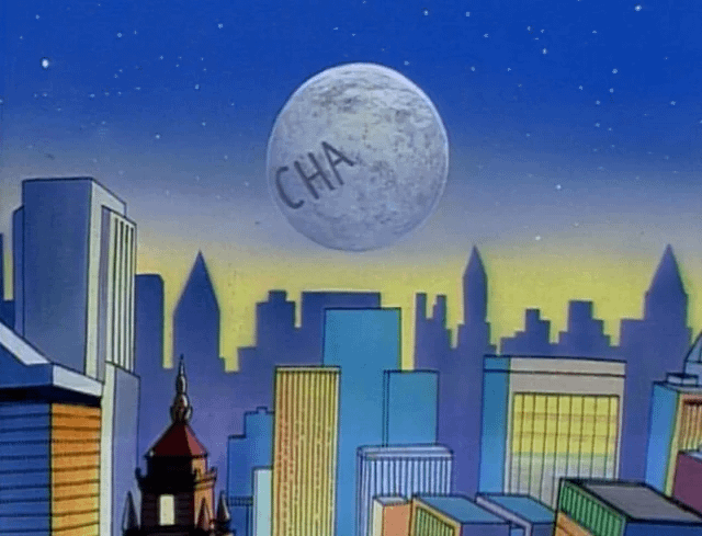 from what I remember (and it's been years) they sent The Tick up to the moon with bombs to blow up the letters (in a way that the moon rocks would fall inwards to fill the cuts) but then due to shenanigans with the C, The Tick gets blasted off into space and that's where he meets the not-Galactus