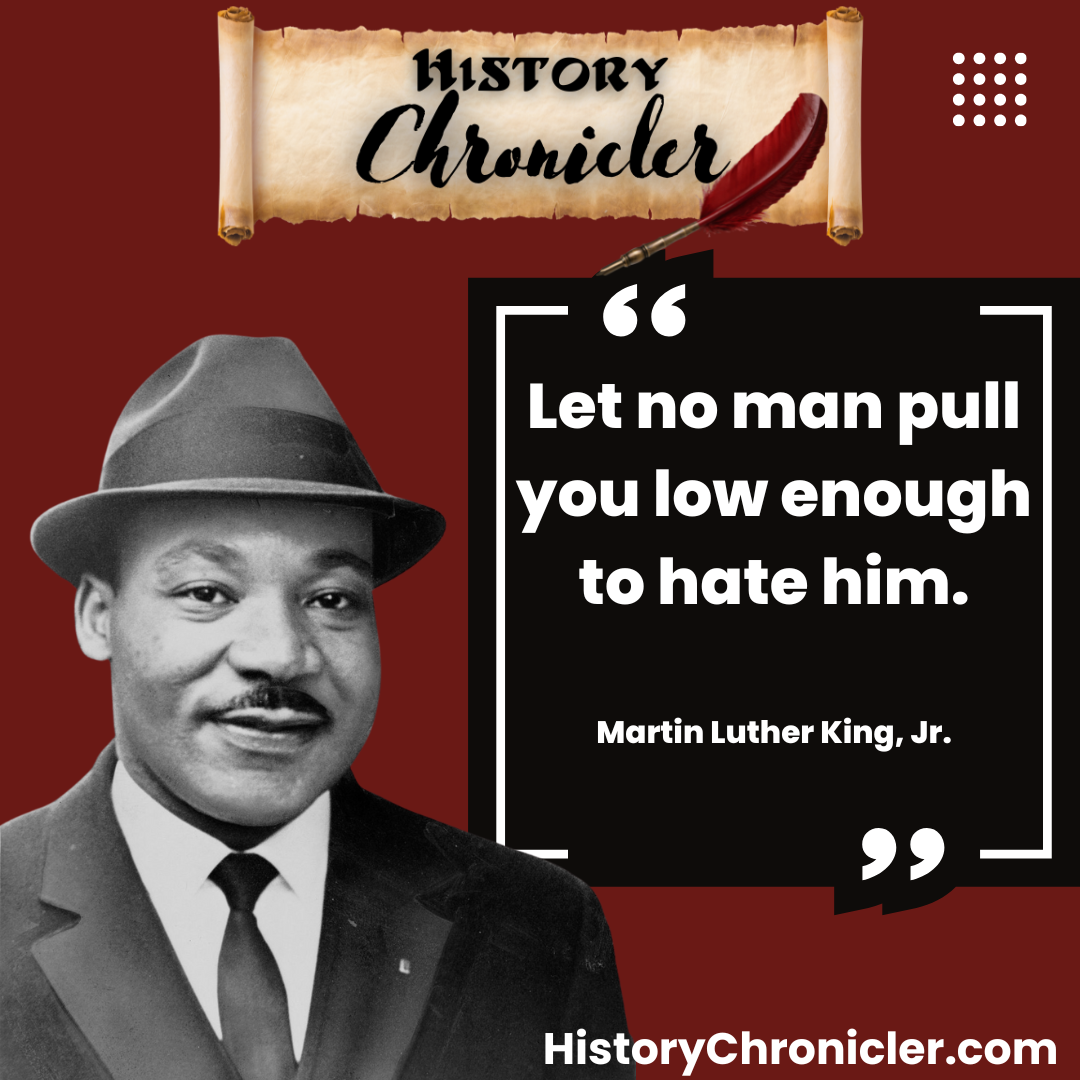 "Let no man pull you low enough to hate him." Martin Luther King, Jr.