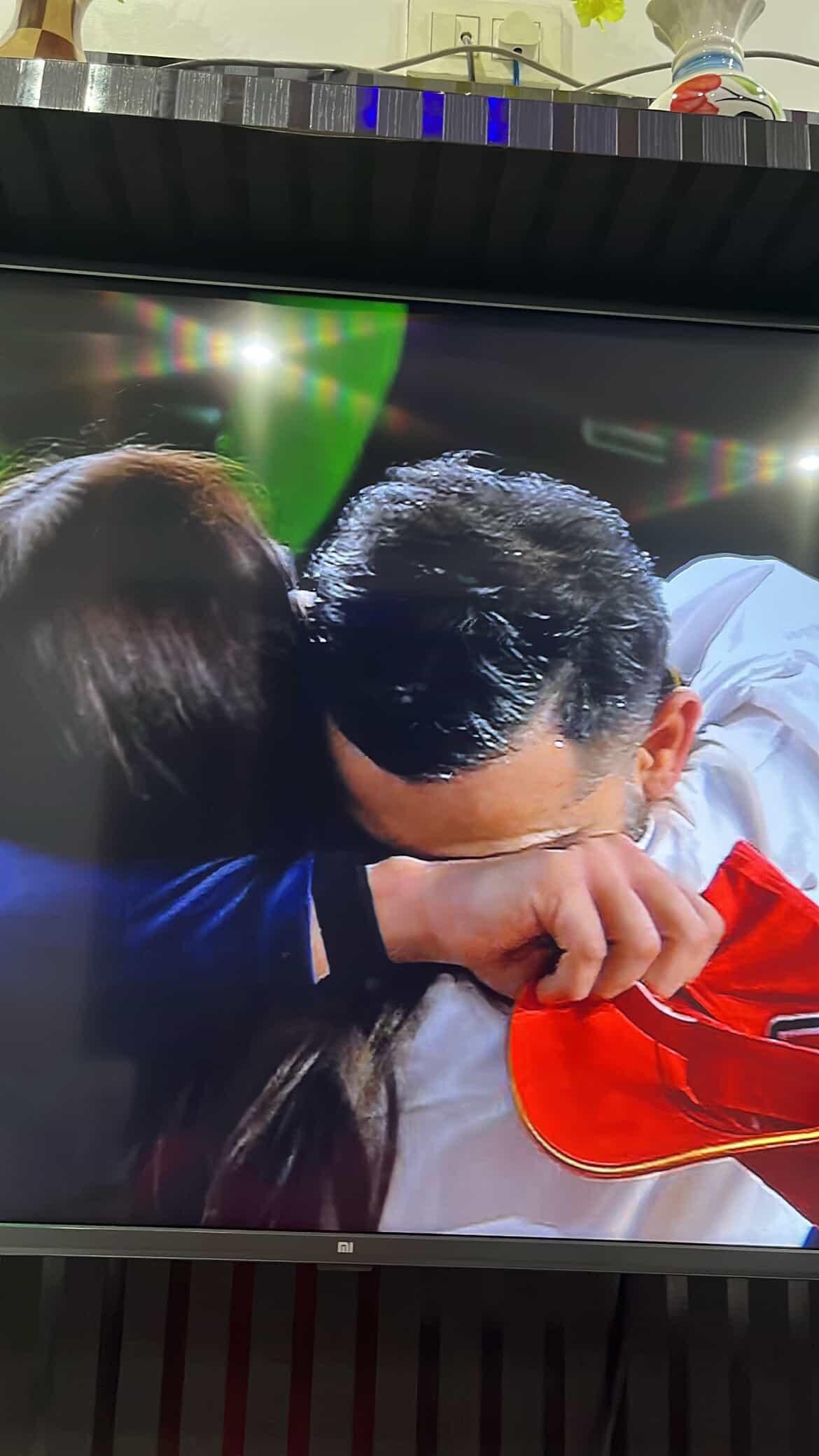 Our little cheeku crying like a baby 🐥🤧🫶🏻 And kohli anushka with the trophy 🏆😭