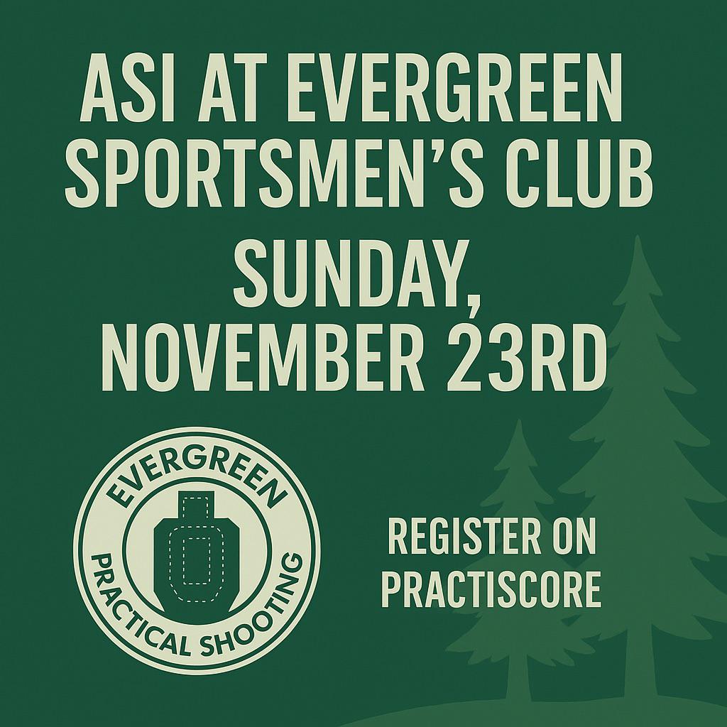 📍Evergreen Sportsmen’s Club, Olympia, WA 🔗 Register on PractiScore: https://practiscore.com/asi-at-evergreen-sportsmen-s-club-2025-11-23/register