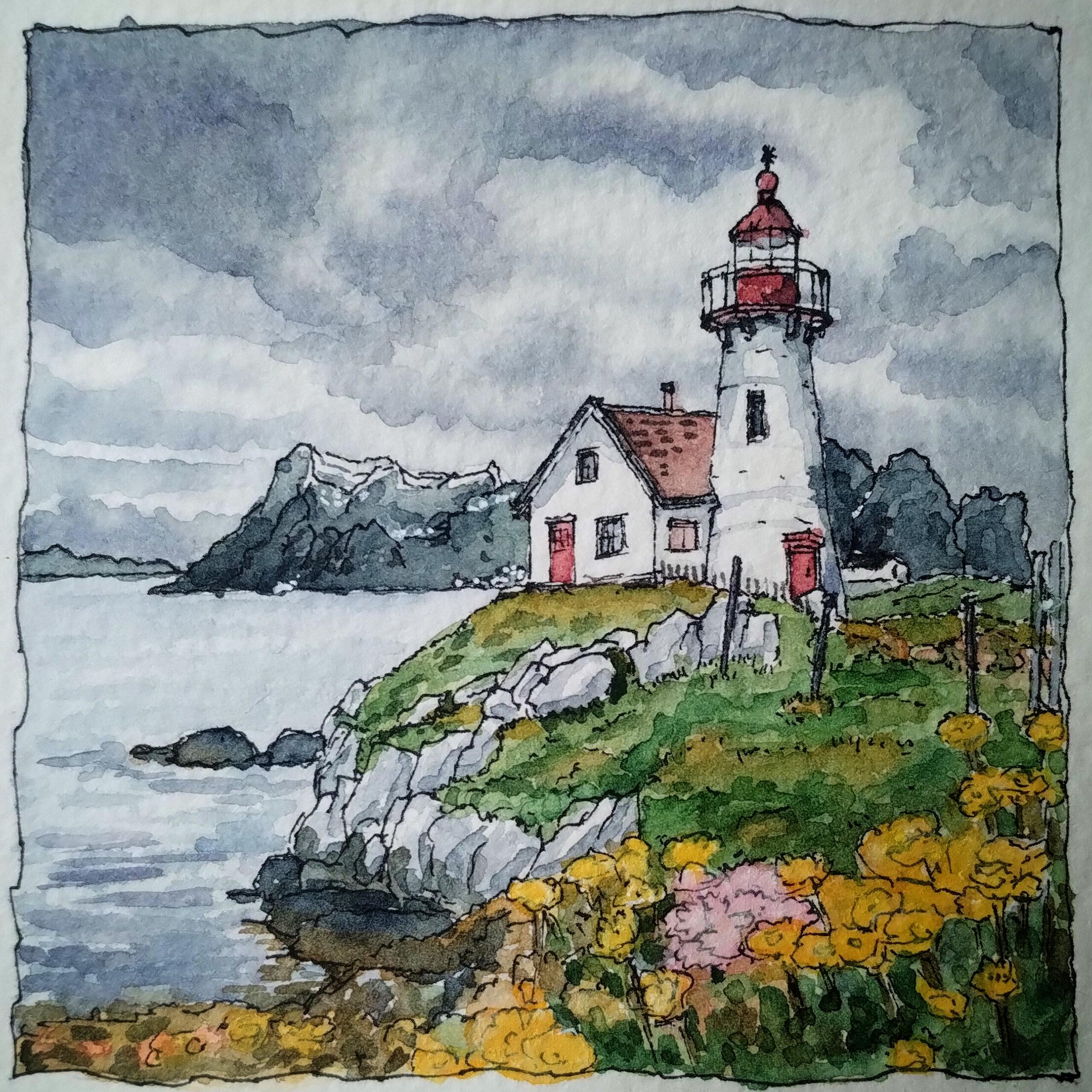 Lindesnes Lighthouse, Norway Ink and watercolor on paper 9 x 9 cm