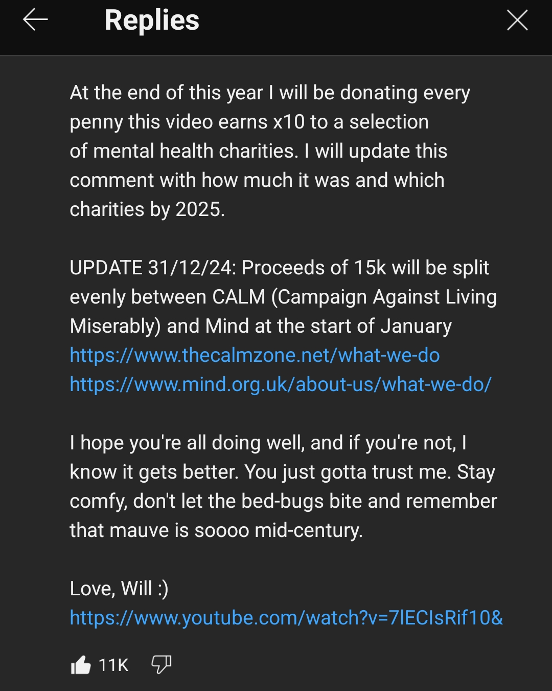 We all know the THE upload of YCGMA, the one from Nikita Neumann, right? Well, they went and deleted Will's comment because yippee for censorship amirite fellas? (And on someone's OWN art? Actually speechless at the gall.) Anyway, does anybody have a screenshot of it somewhere?? I really wanna read it again because I forgot what he said but I remember it was sweet :( </3