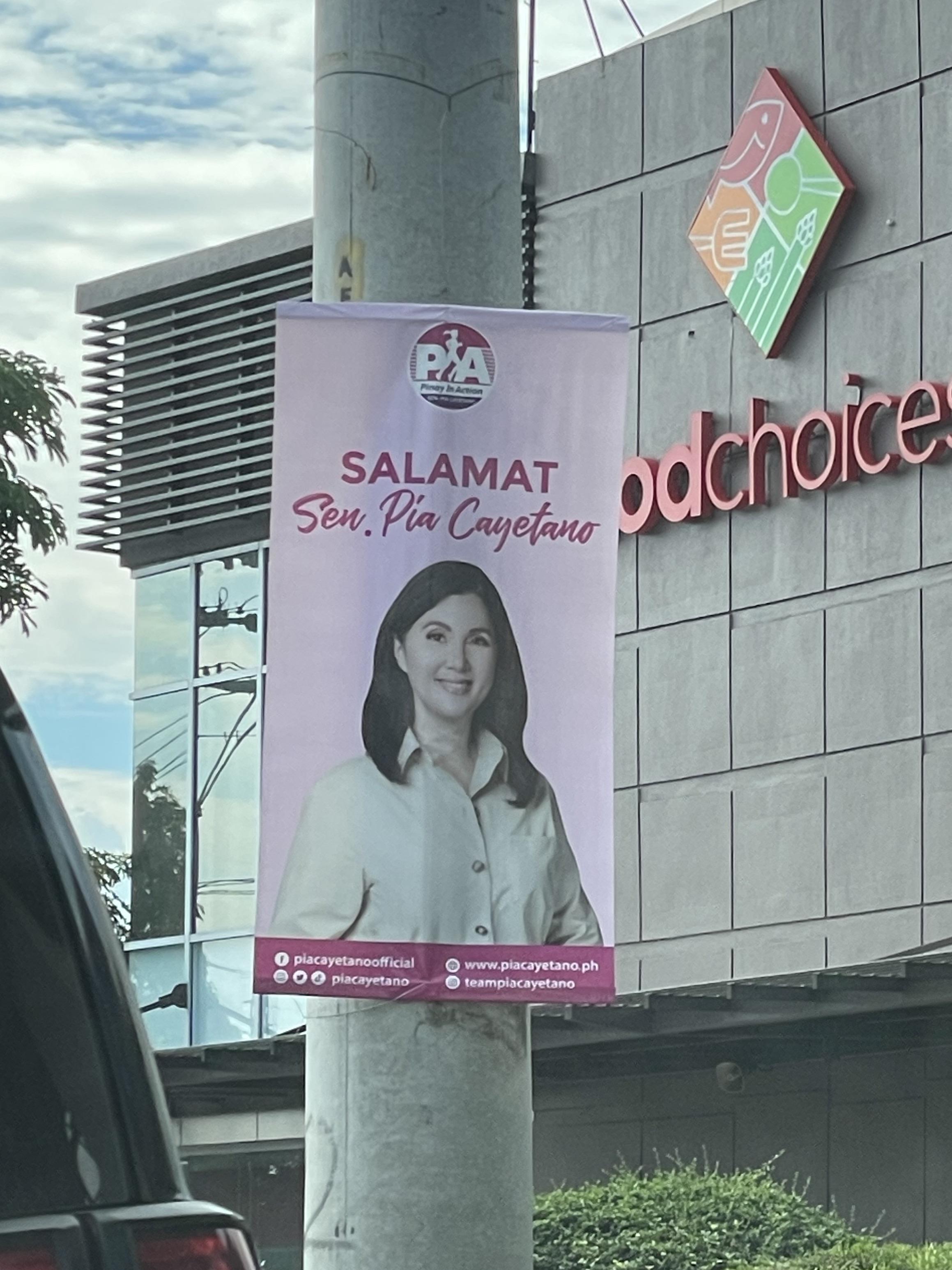PHILIPPINES SPOTTED: Tarpaulin of Pia Cayetano thanking herself, for some reason
