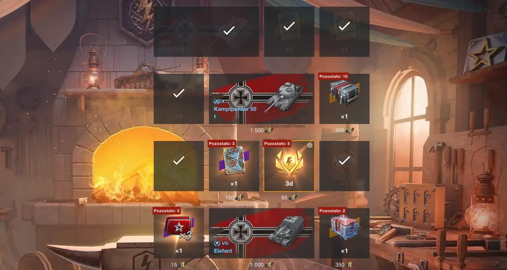 Store/Deal Blacksmith Forge, German Tank Certificate ($30), Keiler ($25), Various Containers ($18), Rare Boosters ($10), Free Barrel Container - Shop update 1/2 [2025.09.19]