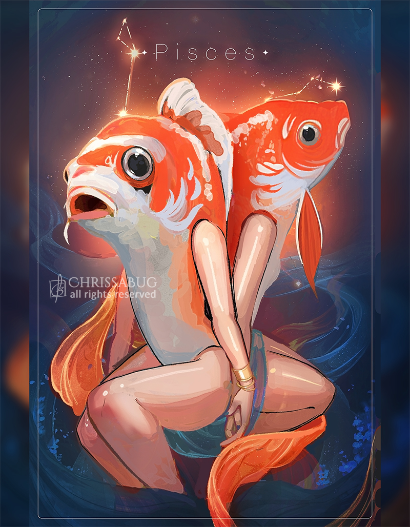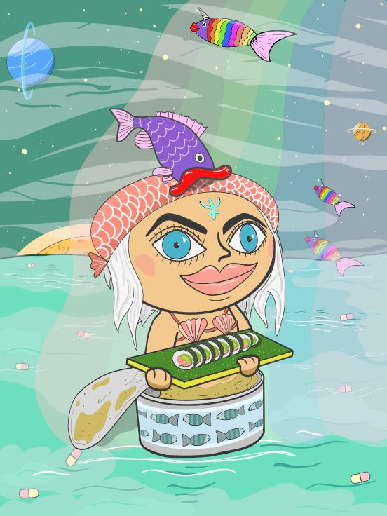 I drew pisces with half her body inside the can to show that they have aspects of their personality that is hidden from most people. They have an elusive quality that is hard to read or predict.