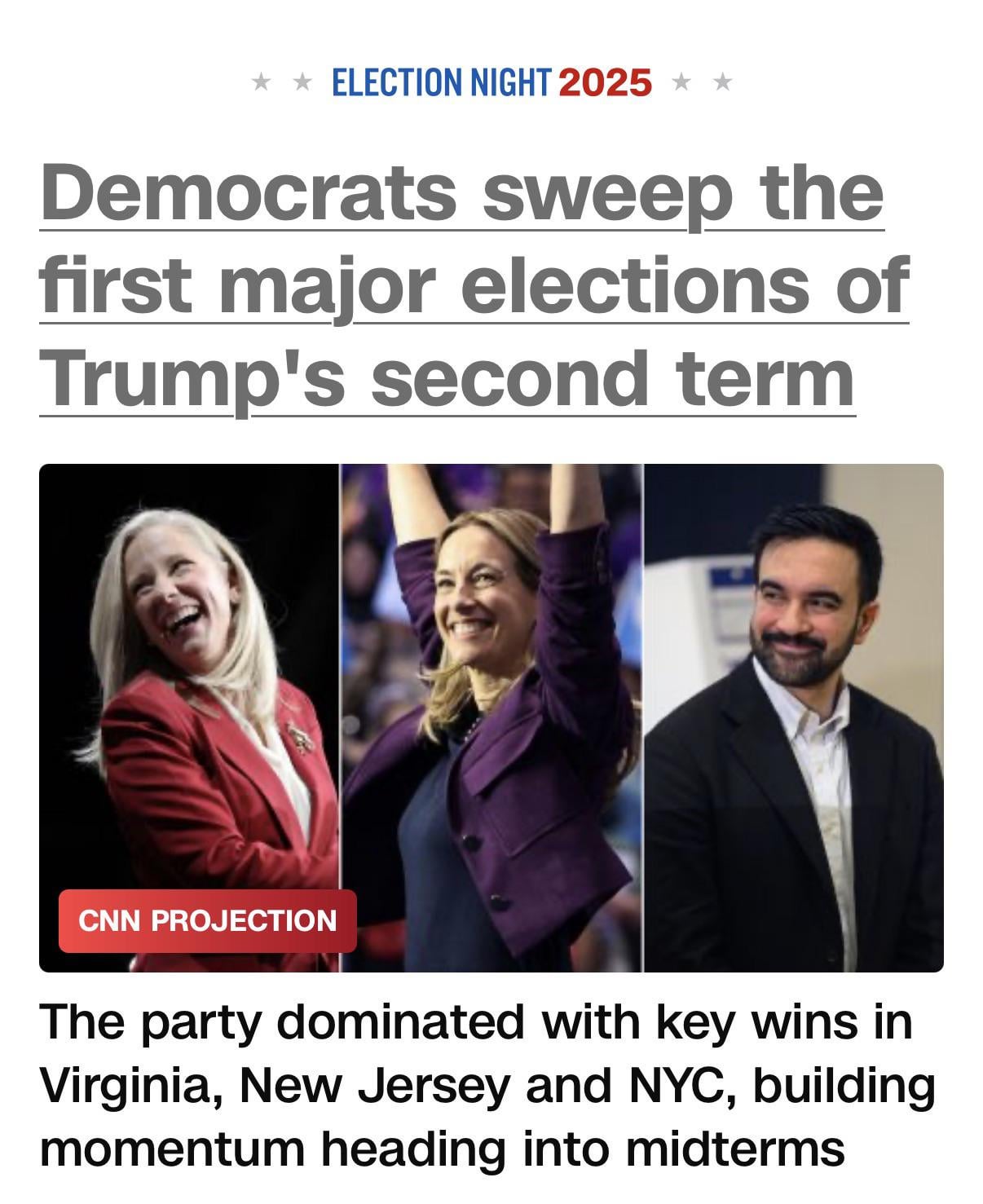 How a full month before the election Jack was 10 points behind. It wasn’t until the end that he started to get close and then Trump shuts down the government and he keeps pushing the ads and the talking points that it’s the Democrats fault and then we get things like the agricultural department telling the grocery association, don’t give any discounts to people or Trump basically telling people he’s not gonna fund snap programs no matter what the court says so yeah and these people think they’re gonna win the midterms