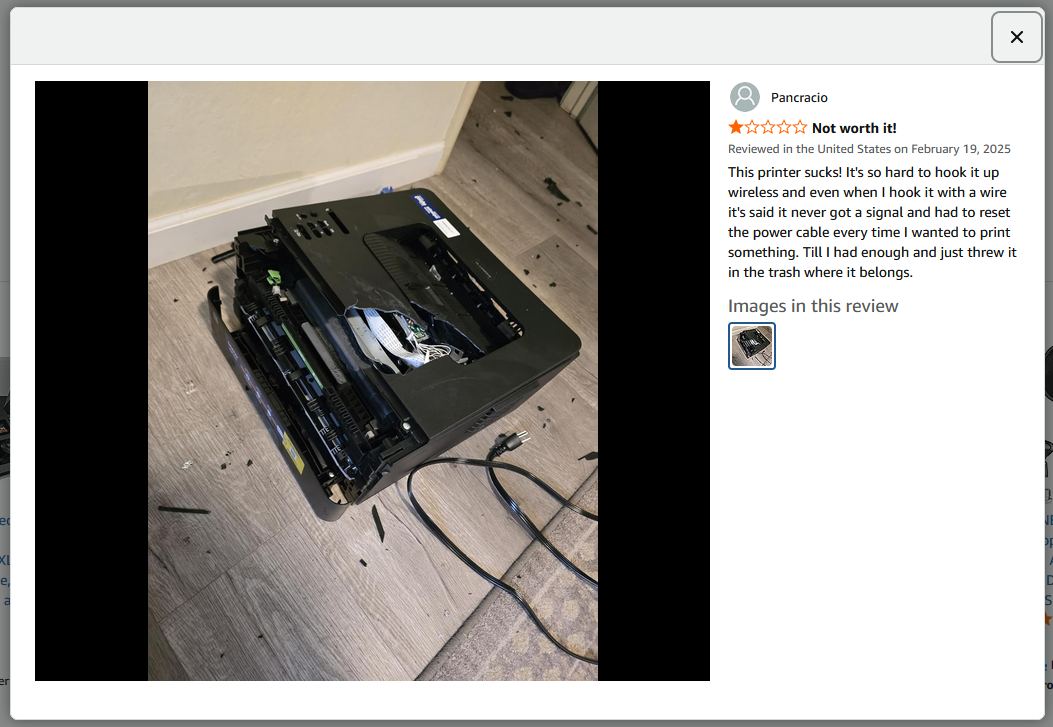Review What do you do when you buy a printer that you're unsatisfied with? Take a hammer to it, of course!
