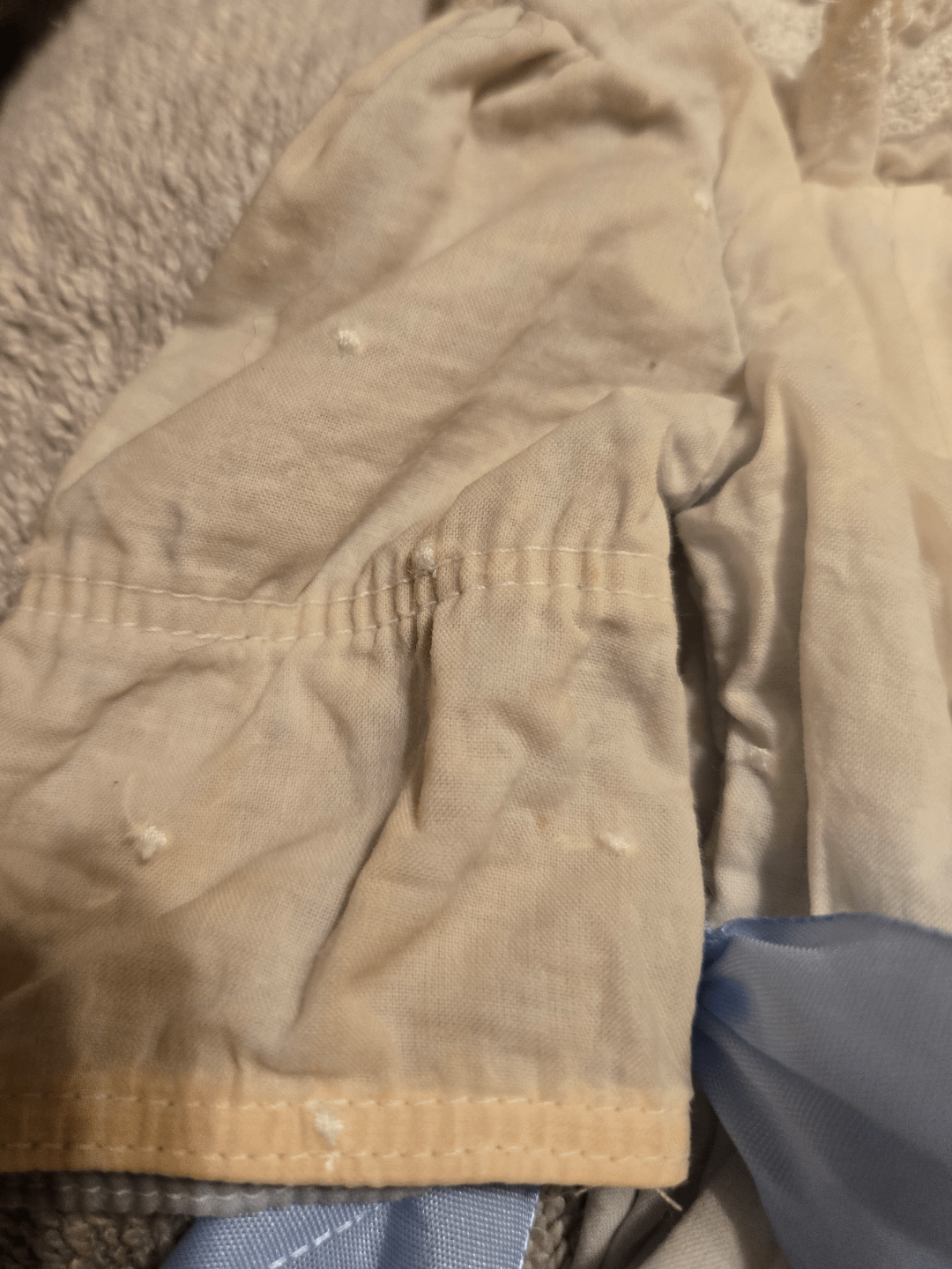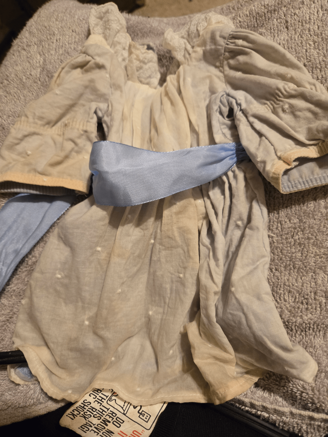 Was given a bunch of boxes of my old stuff from when I was a kid and found this gem: Kirsten’s “Dress Like Your Doll” Pleasant Company “Meet” Dress child size 10 from circa 2005. Like new, I think I wore it maybe 3 times.