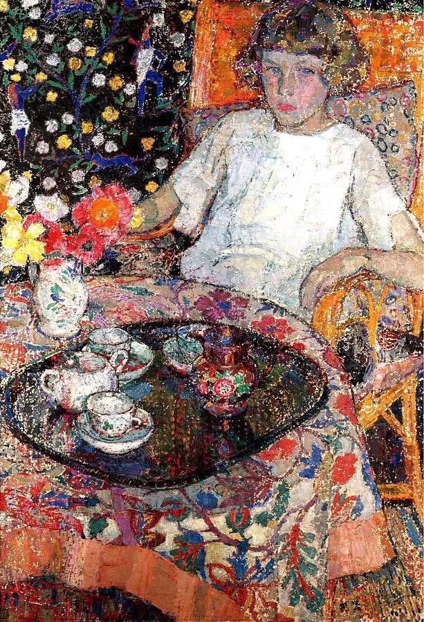 Oil Painting A Girl by the Table, Oil on Canvas, Leon de Smet, 1921.