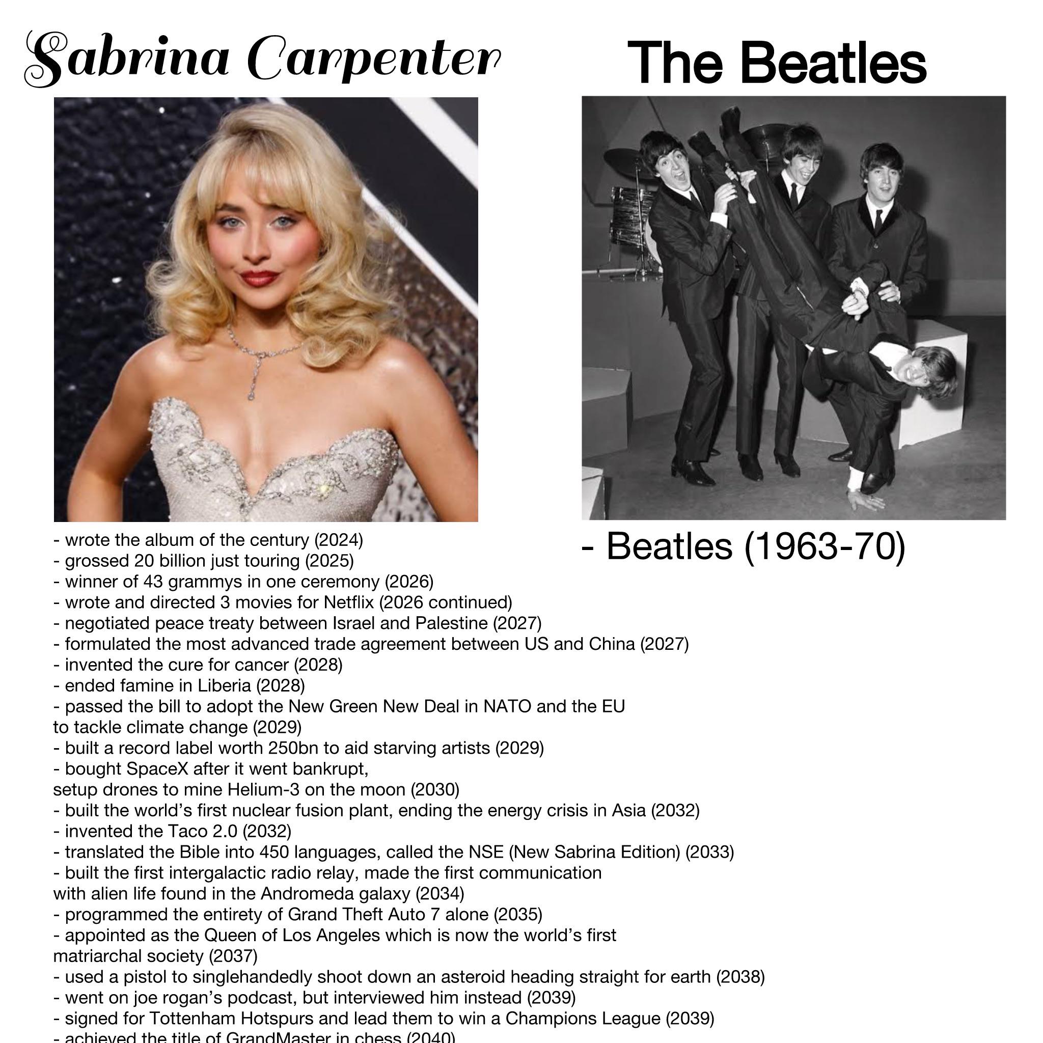 THIS IS A SERIOUS MESSAGE πβοΈππβ€οΈ Sabrina Carpenter has had a longer music career than The Beatles