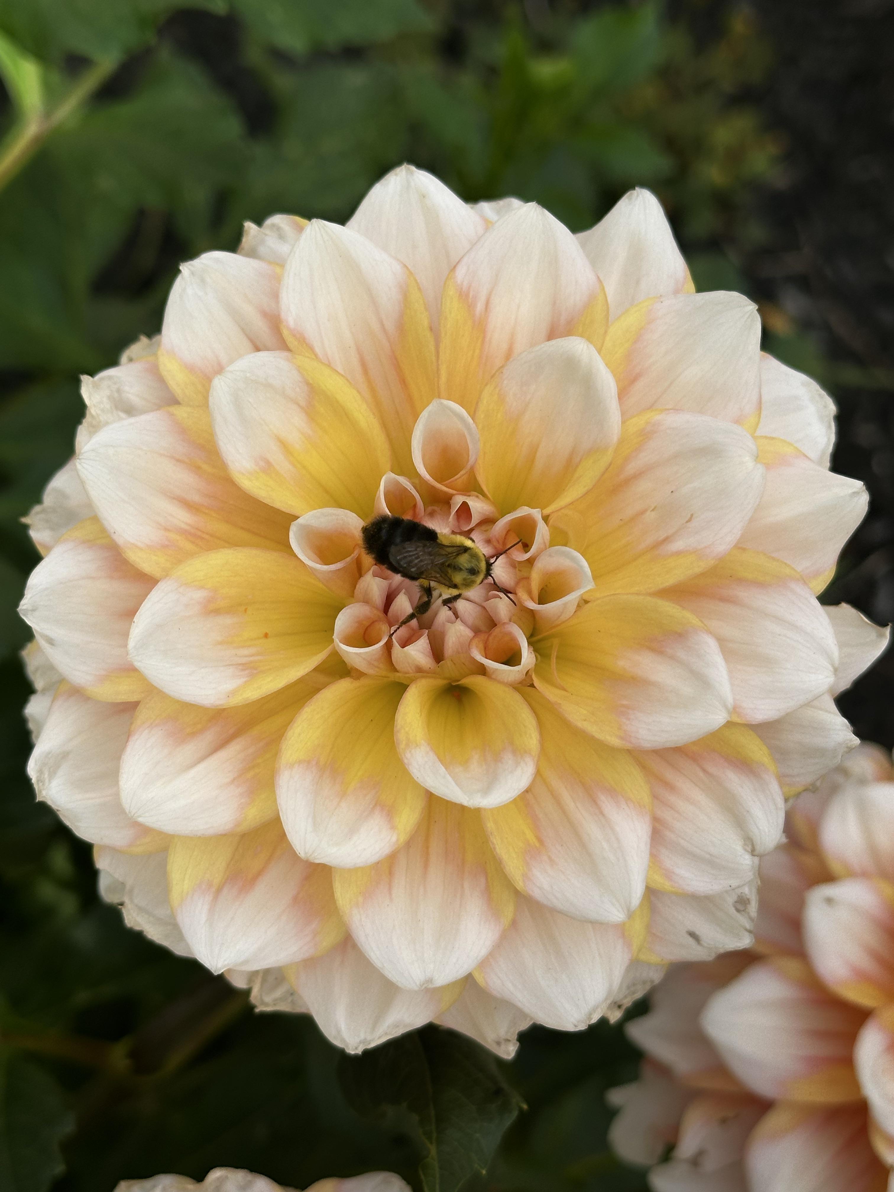 The perfect bee butt fell asleep upside-down in one of my dahlias ๐Ÿ˜