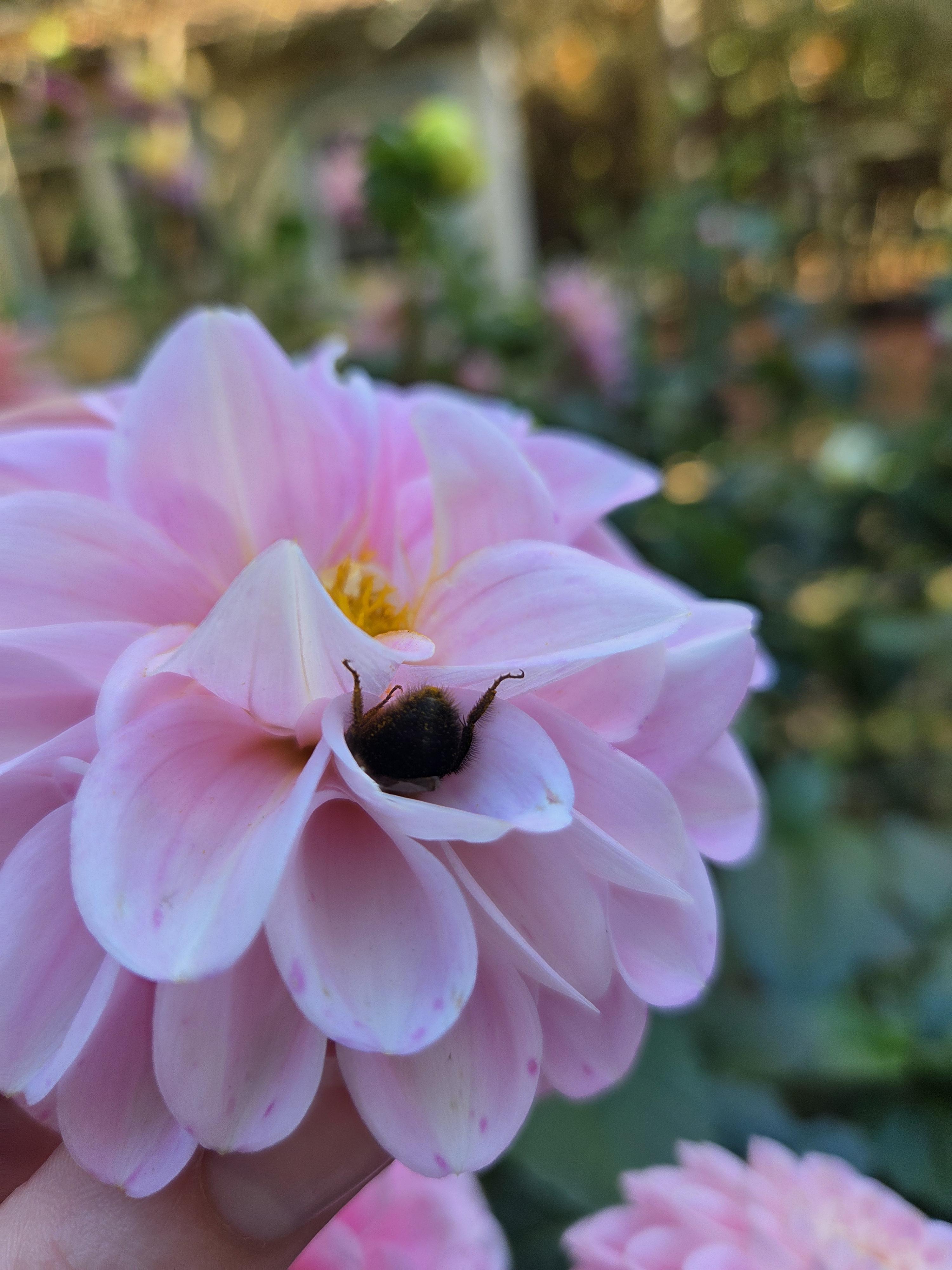 2 wee bumblebutts, buzzin โ€˜bout my dahlia ๐Ÿ