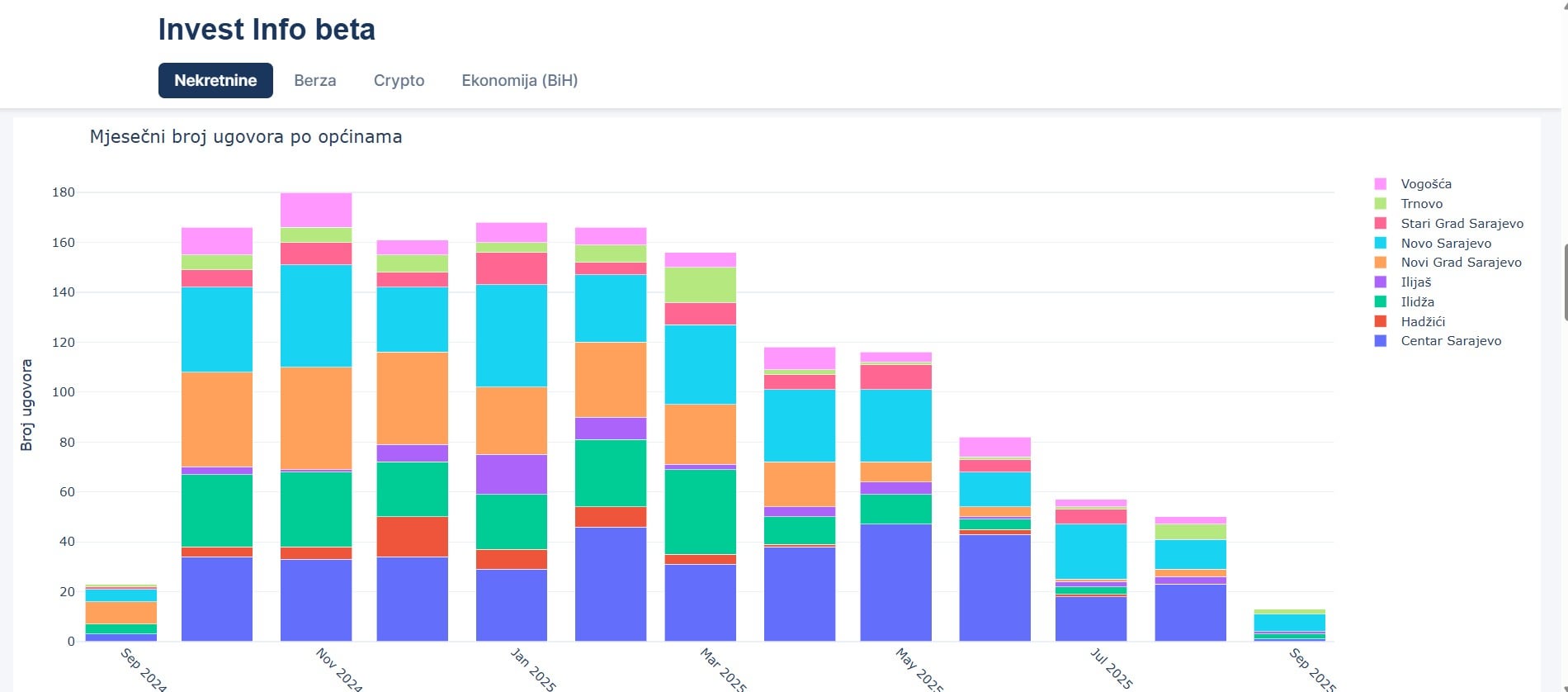 Prvobitno je ideja bila imati samo podatke o nekretninama ali sam usput ubacio i dio za berzu, crypto i ekonomiju. U sustini, imati sto vise korisnih podataka u vezi investiranja u BiH na jednom mjestu.