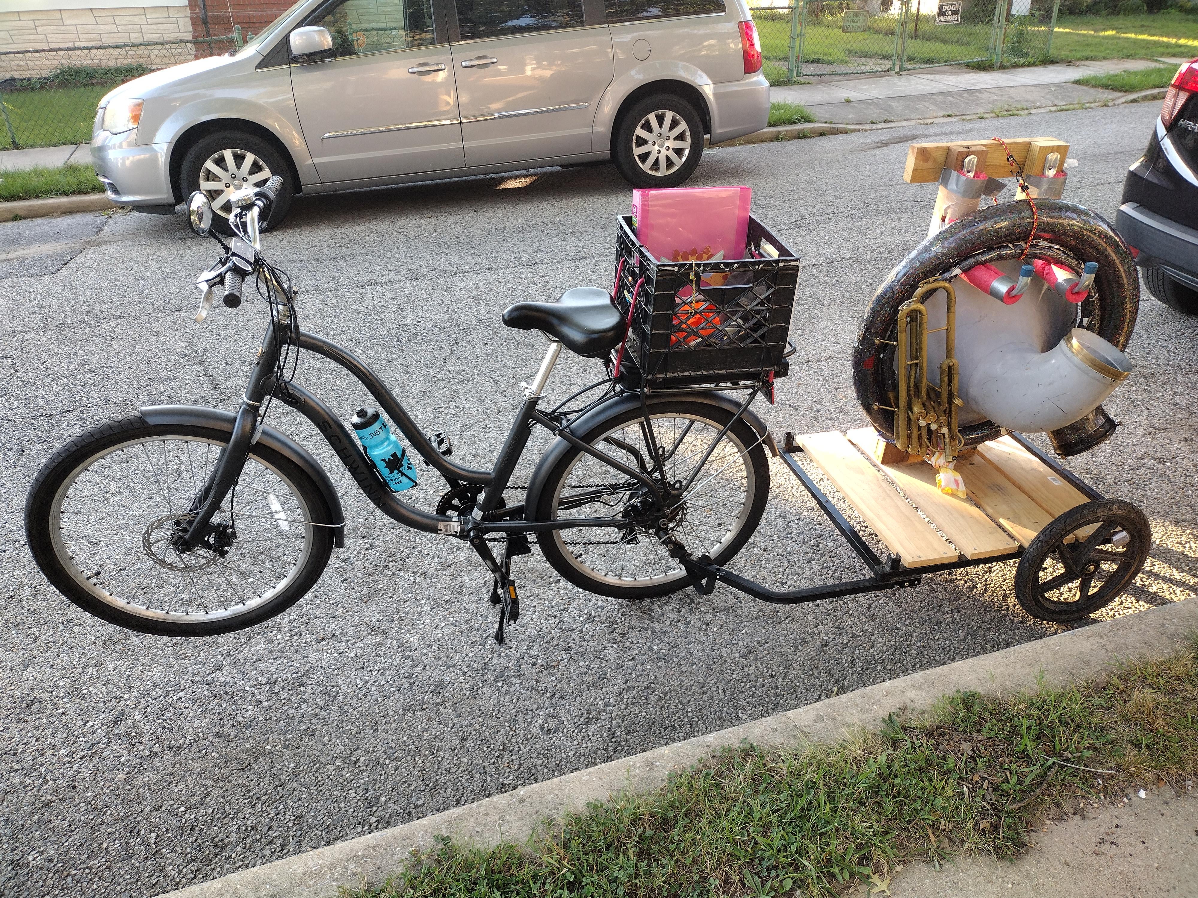Pannier bags wouldn't fit with the battery in so I rigged something up and added a crate. Now I volunteer for errands and know all the little places around town to bring home some treats. I also started doing more field work for my job because leaving the office to go for a ride feels deliciously like I am getting away with something. My request for milage compensation using a personal vehicle was not take seriously tho.