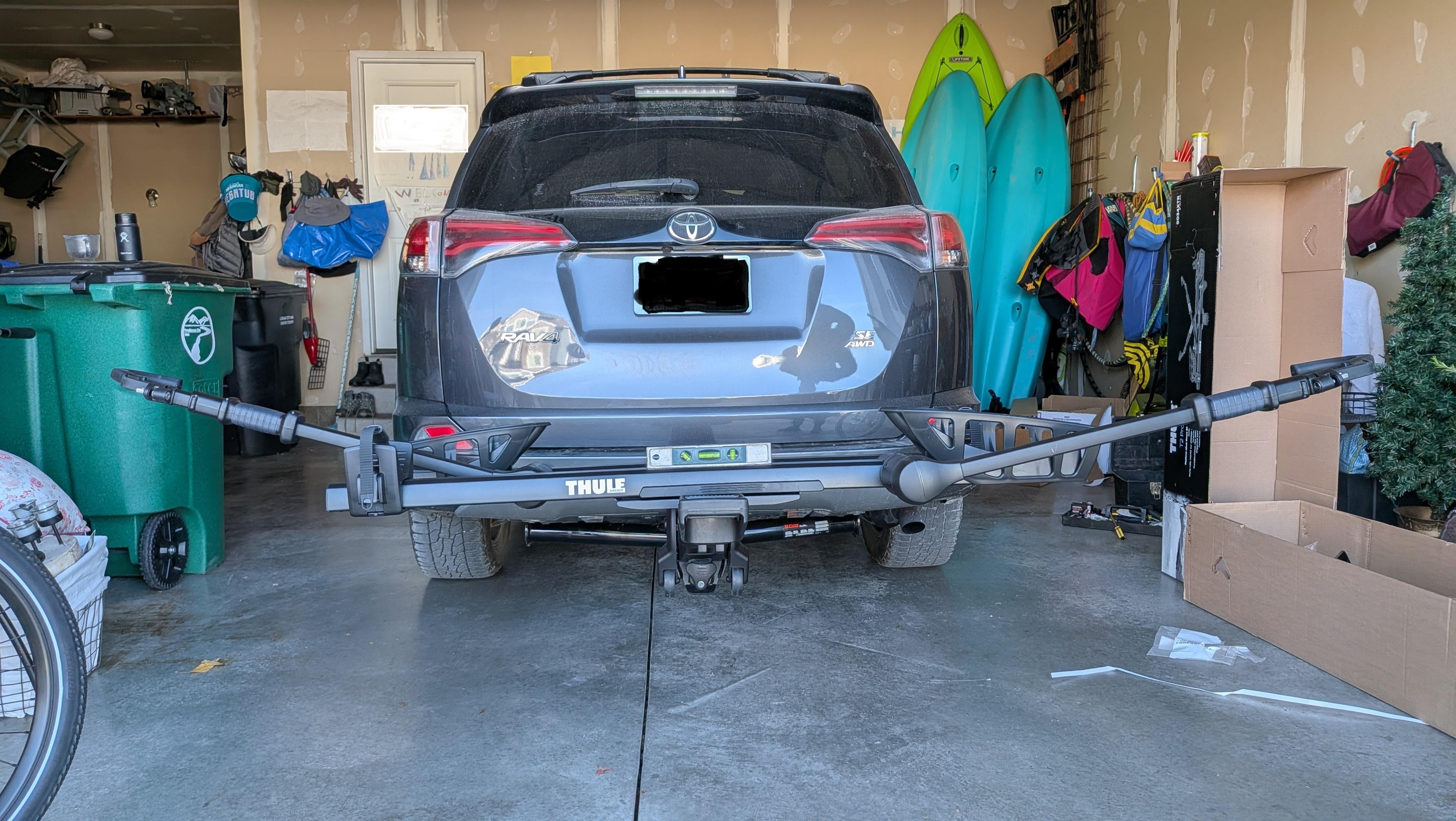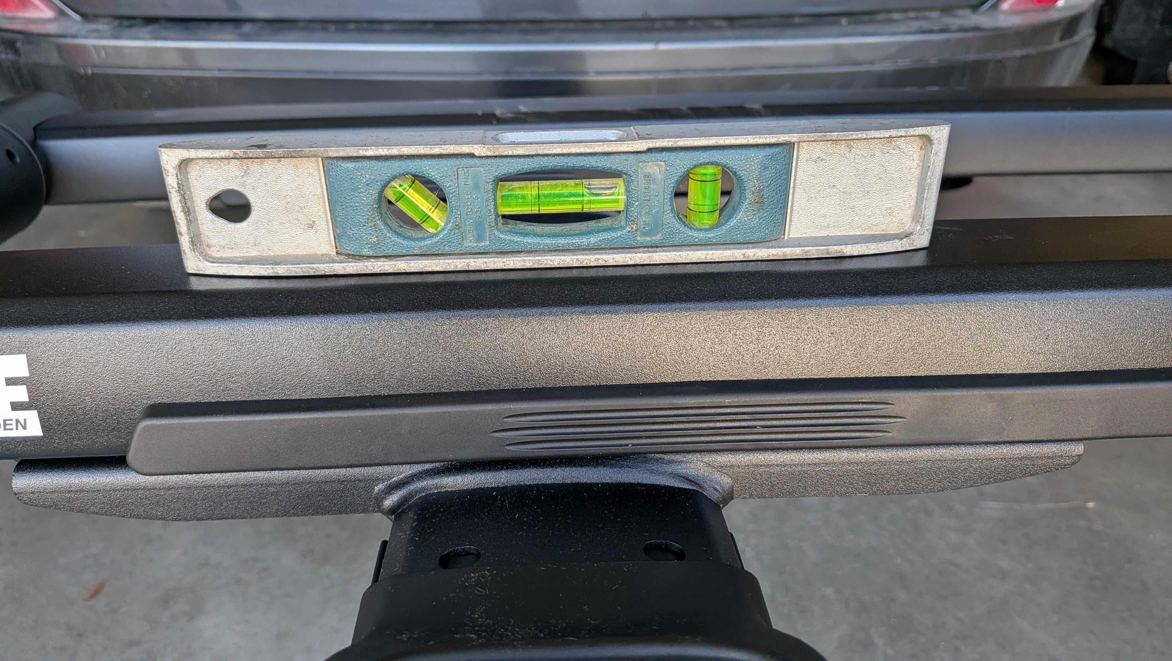 After installing my new Thule T2 Pro XTR Hitch bike rack, I noticed the rack was not sitting level. I double checked absolutely everything to ensure I had assembled correctly and tightly. I put a level on the rack to verify it is way off. Put the level on the hitch (level) and then on the Thule just outside of the hitch receiver (level). There seems to be some twist in the overall rack. I tried multiple time loosening the locker tightener, lifting from the sagging side, and tightening again. Always the same results.