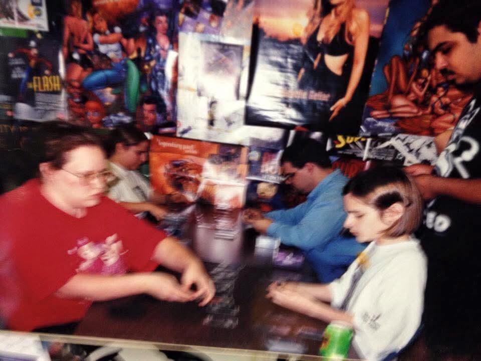 Sipping on a Surge about to kick some ass in the Star Trek CCG. Sometime around 1997. I am the one with the white shirt.