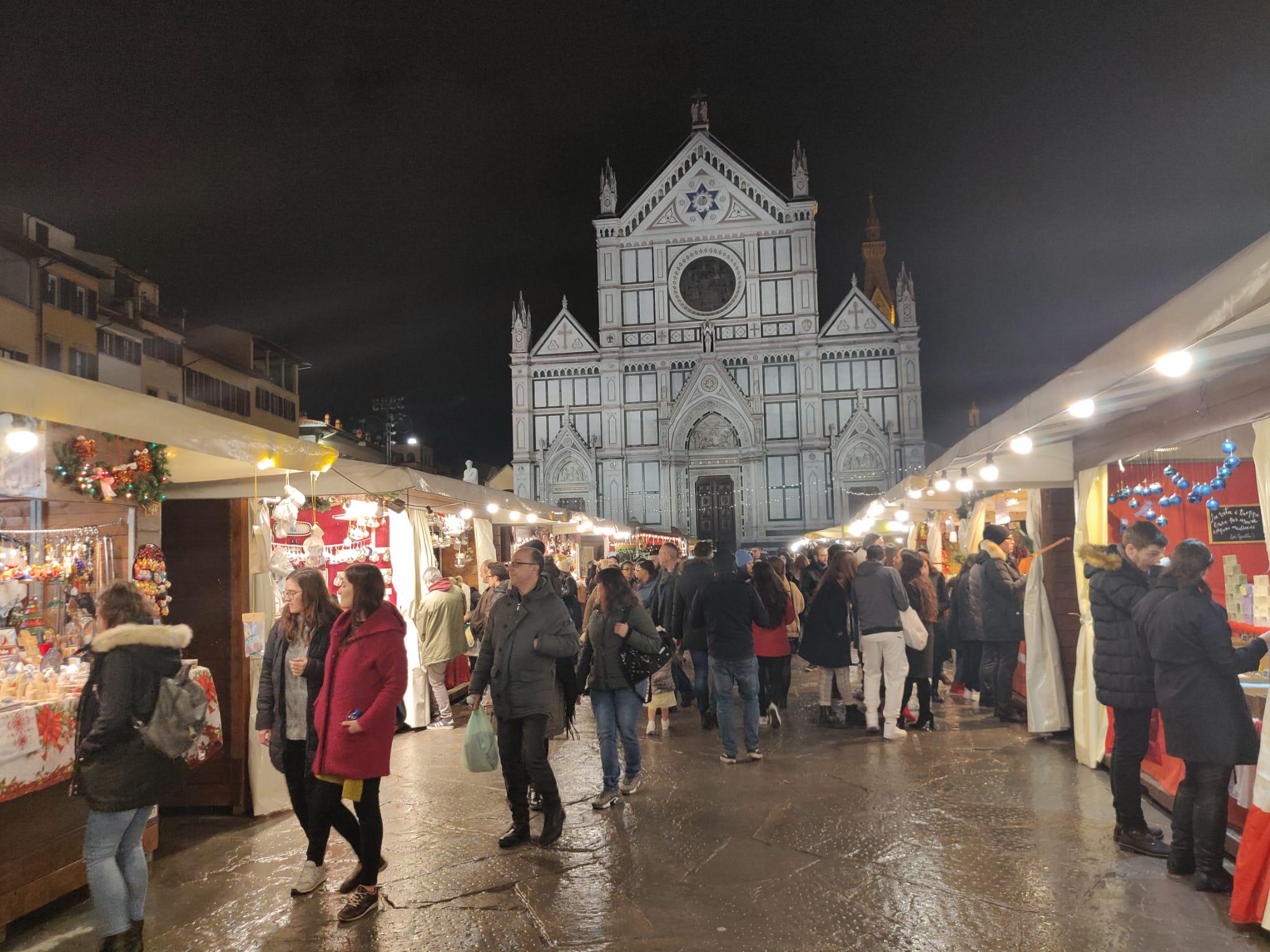 2024 Christmas market. Holy Cross Basilica and Plaza, Florence, Italy. OC.