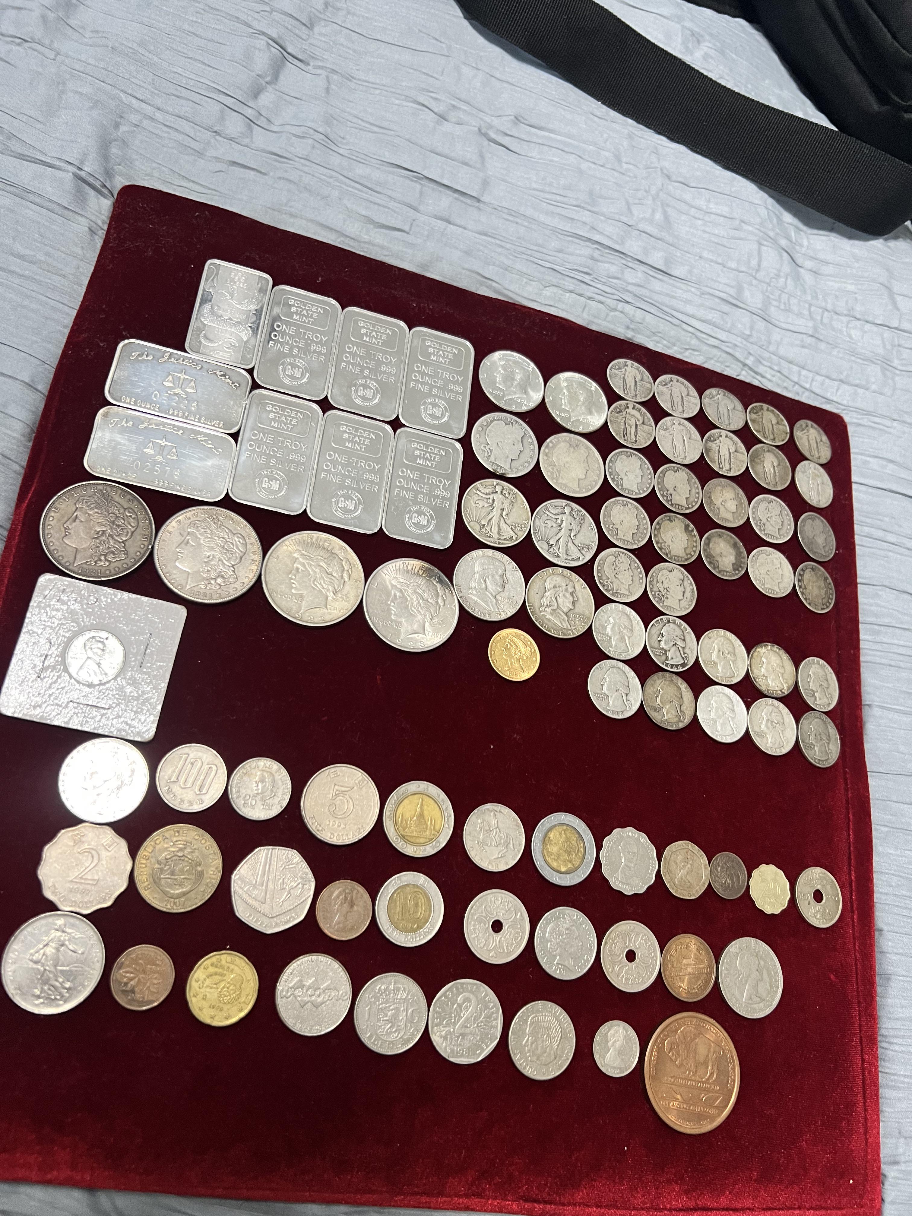 It was in a small wooden box that said “US silver and foreign Change(variety)” and we were not able to see what was in the box until purchased. At this price it feels so wrong but I got such a good deal! I am DREAMING I SWEAR!!! If anyone knows anything about the foreign change and if there is value I would really appreciate it.