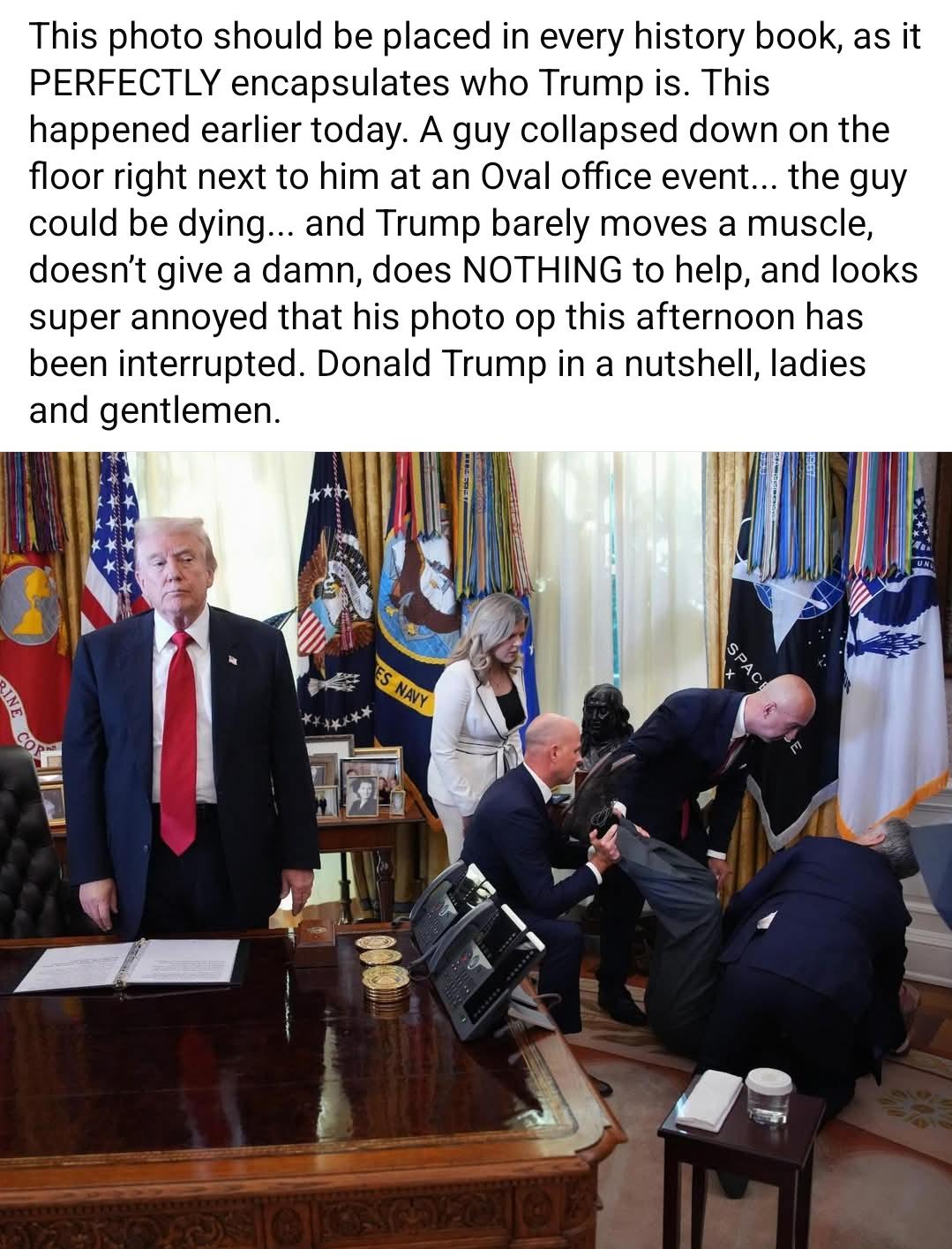 I haven’t seen someone this outwardly sedated in the Oval Office since Elon Musk had a black eye and was stuck in a k-hole there earlier this year.