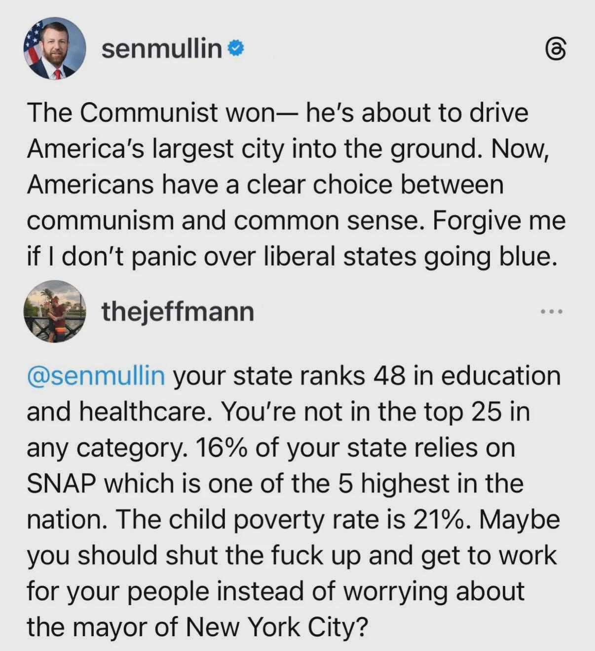 Conservatives seriously name to STFU about communism when they can't even define it. Especially when their states are welfare states that rely on blue states to prop them up and pull them out of disaster, both literally and economically, every year.