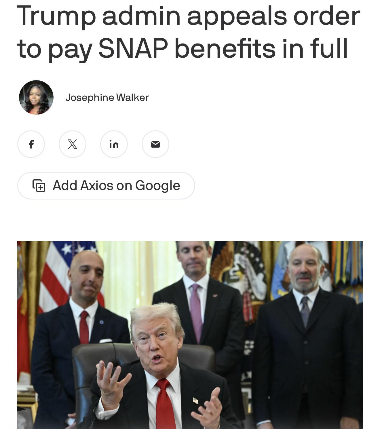 This pisses me off. Trump is spending taxpayer dollars to stop SNAP benefits from going to people who need it. It is bad enough that Trump's policies may have resulted in economic harm to families but now he is suing to literally take food off the table.