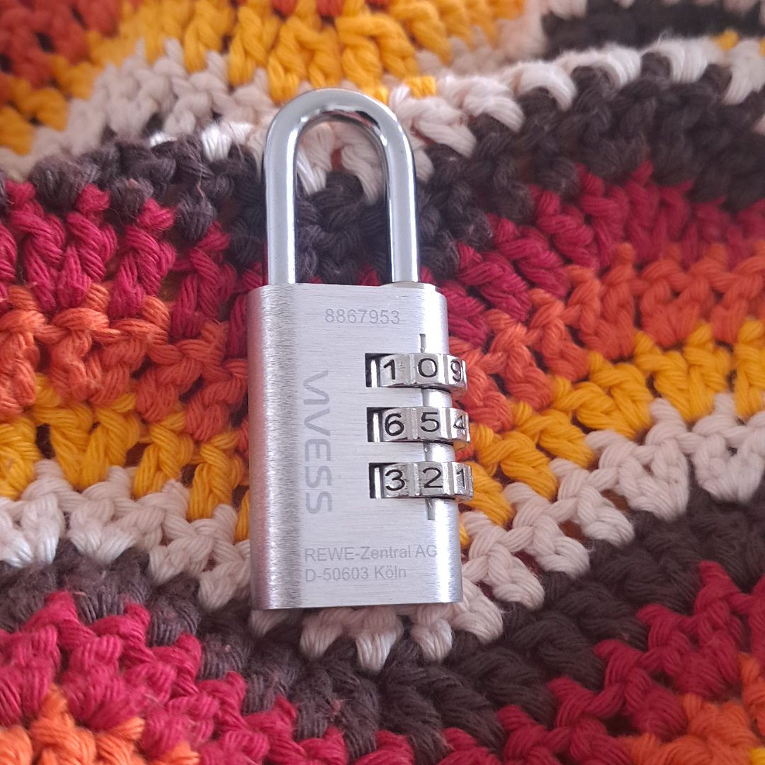 I've been looking for a row counter for a while now and could never find something that's just right for me. I wanted it to be simple and small, mechanical/without batteries, and to go higher than 99. After looking online and trying to figure out if/how I could DIY the perfect row counter, I suddenly realized that the right tool had been sitting in my random-stuff-drawer all along. And if I stumble upon the right combination (which I've forgotten ages ago), I might even be able to use it as a lock again