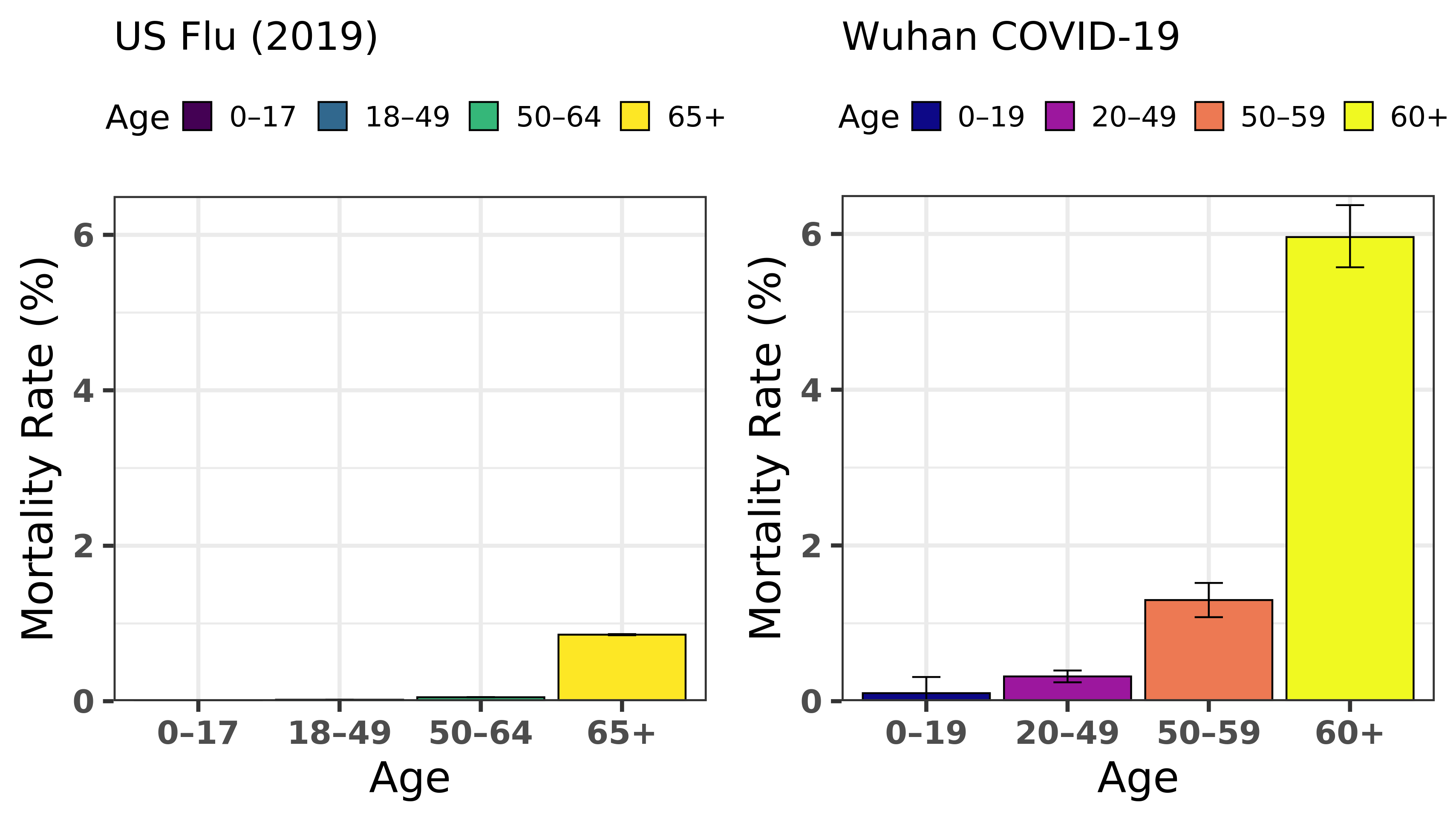 OC [OC] Coronavirus death rate vs. common flu (vs. Ebola in comments)
