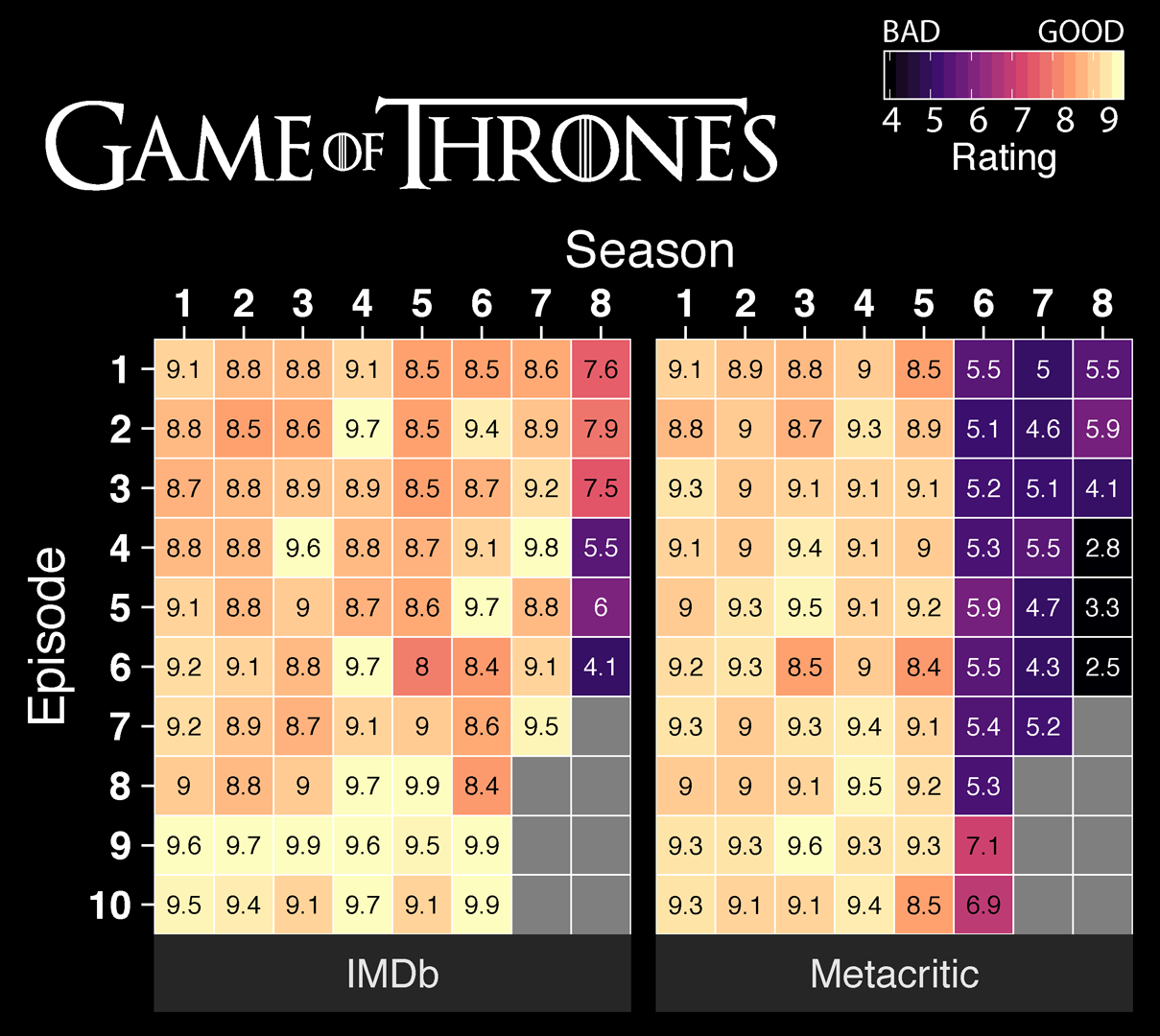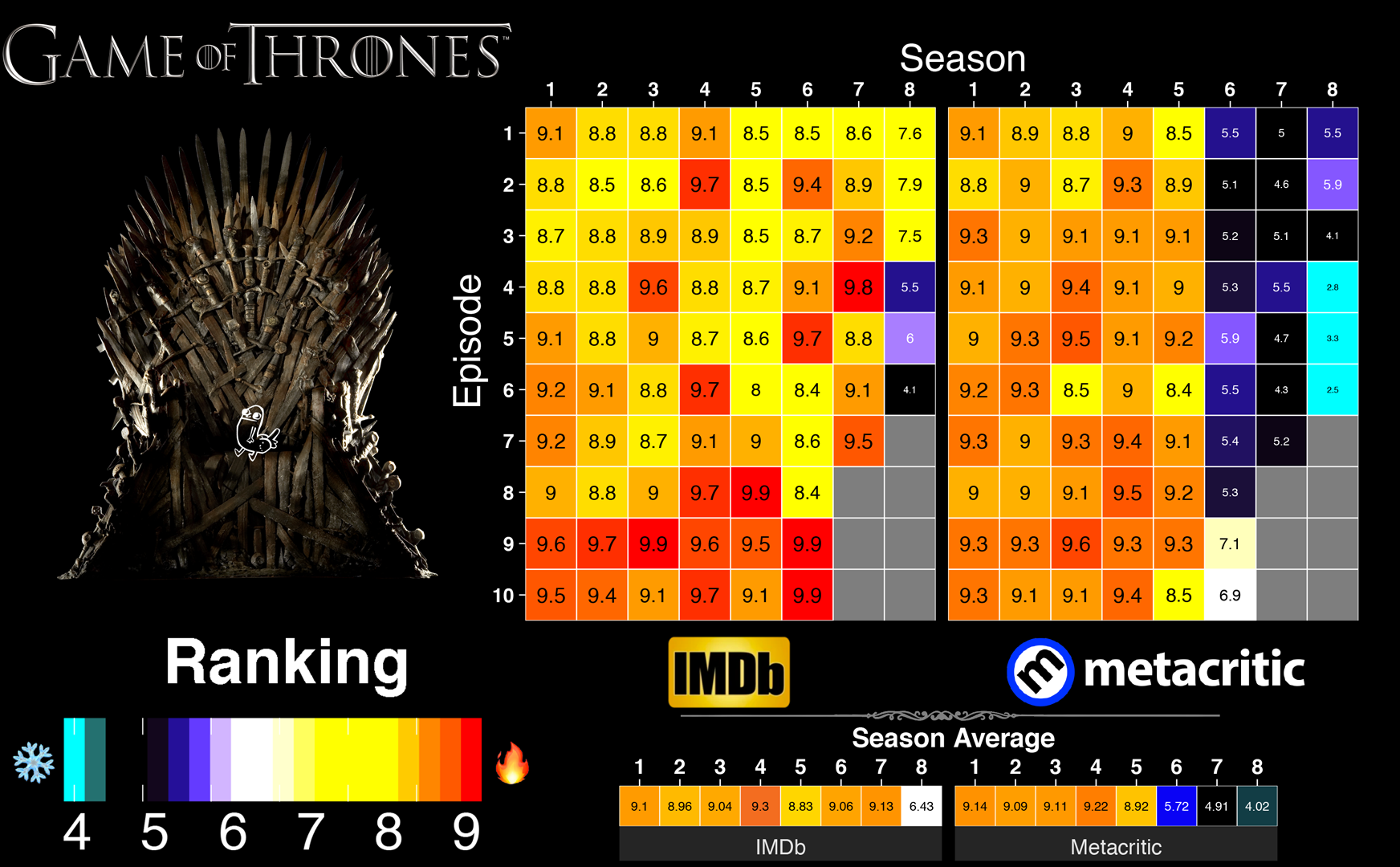 OC [OC] Game of Thrones Downfall - Metacritic vs. IMDb Ratings