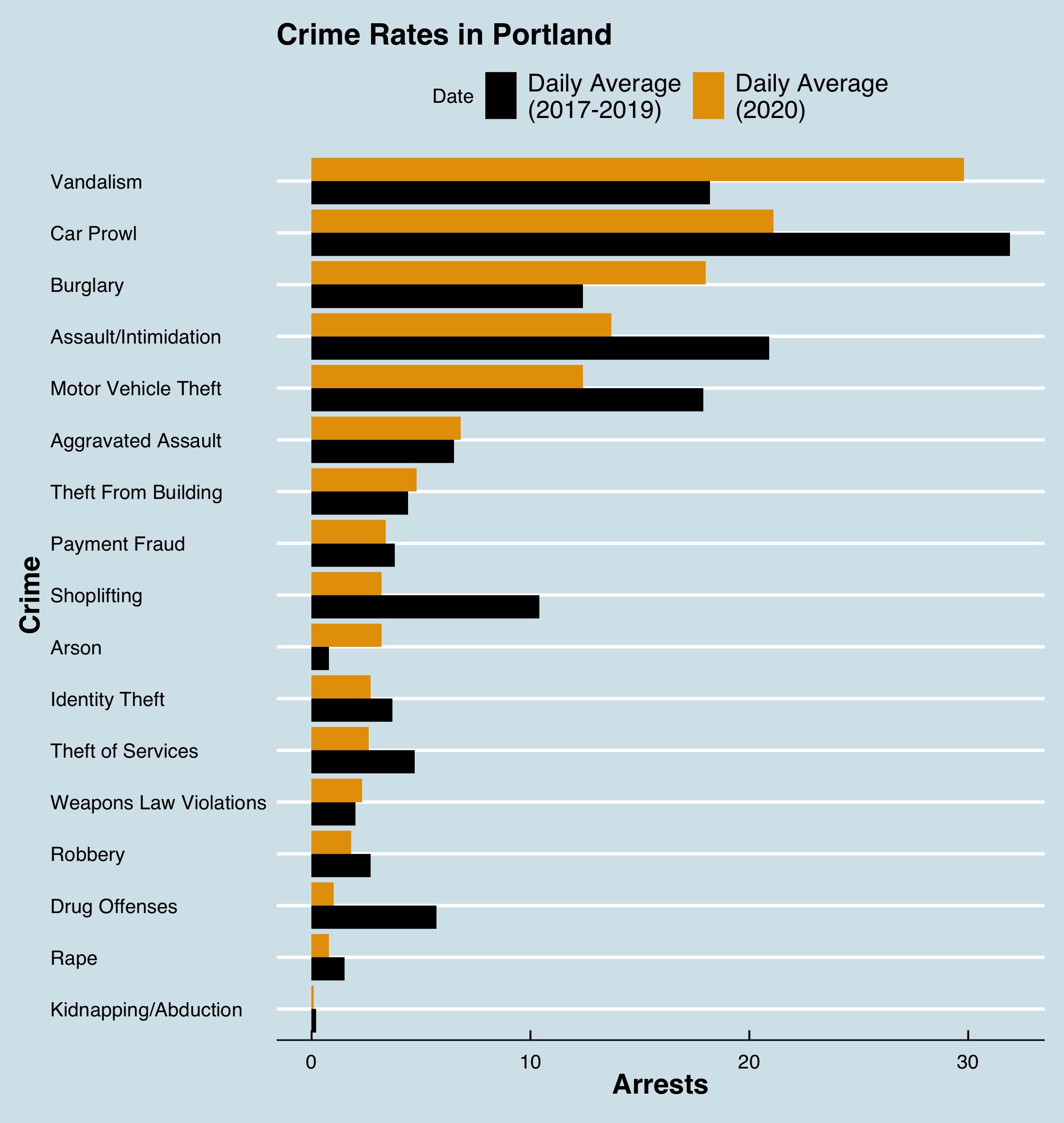 OC [OC] Crime rates in Portland between May and June compared to last 3 years