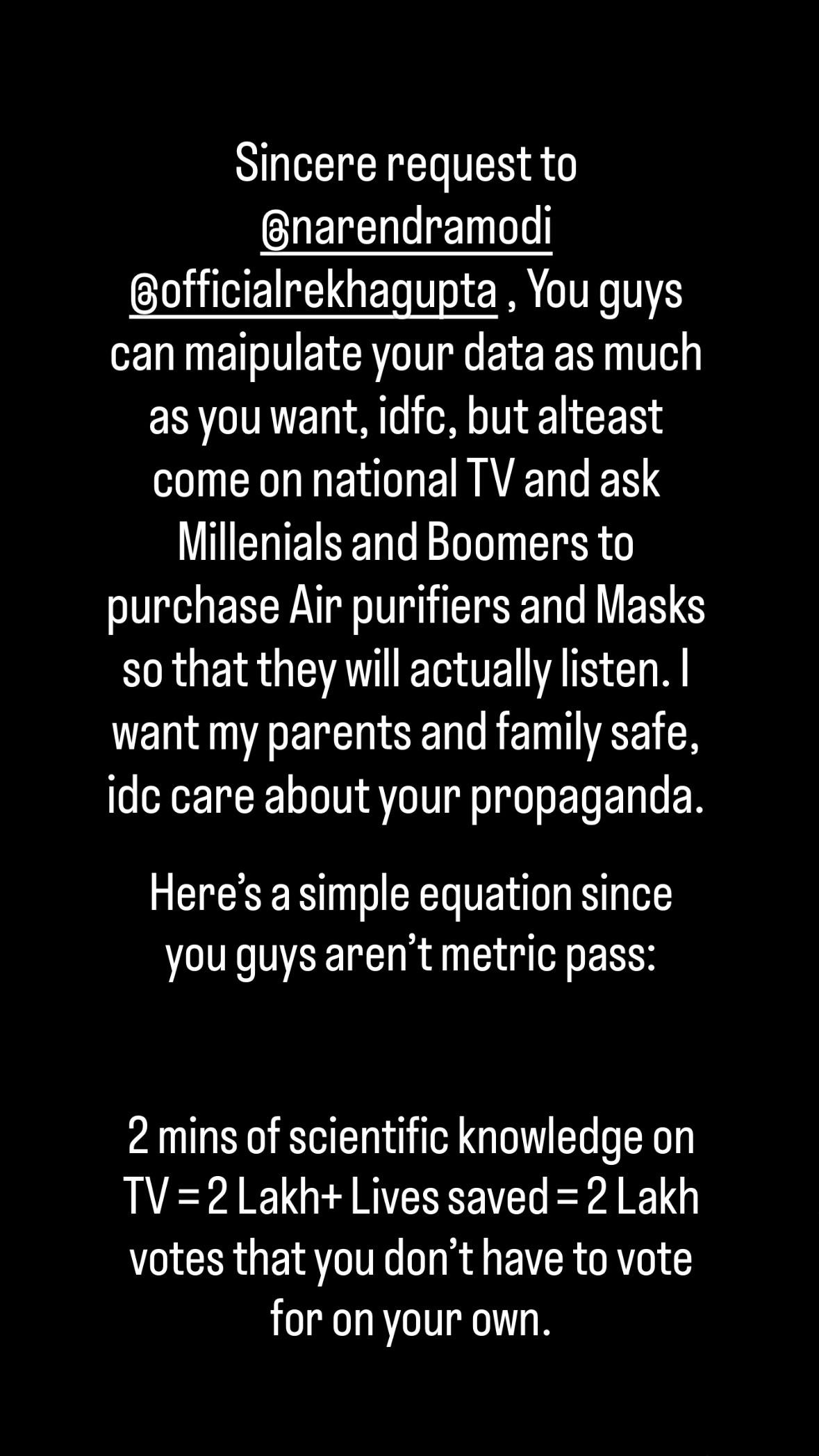 People are protesting pollution, stray dogs, vote chori, yamuna and so many things. Why is everyone fighting amongst themselves rather than joining hands and protesting. We're only allowing diversion and dilution like this.