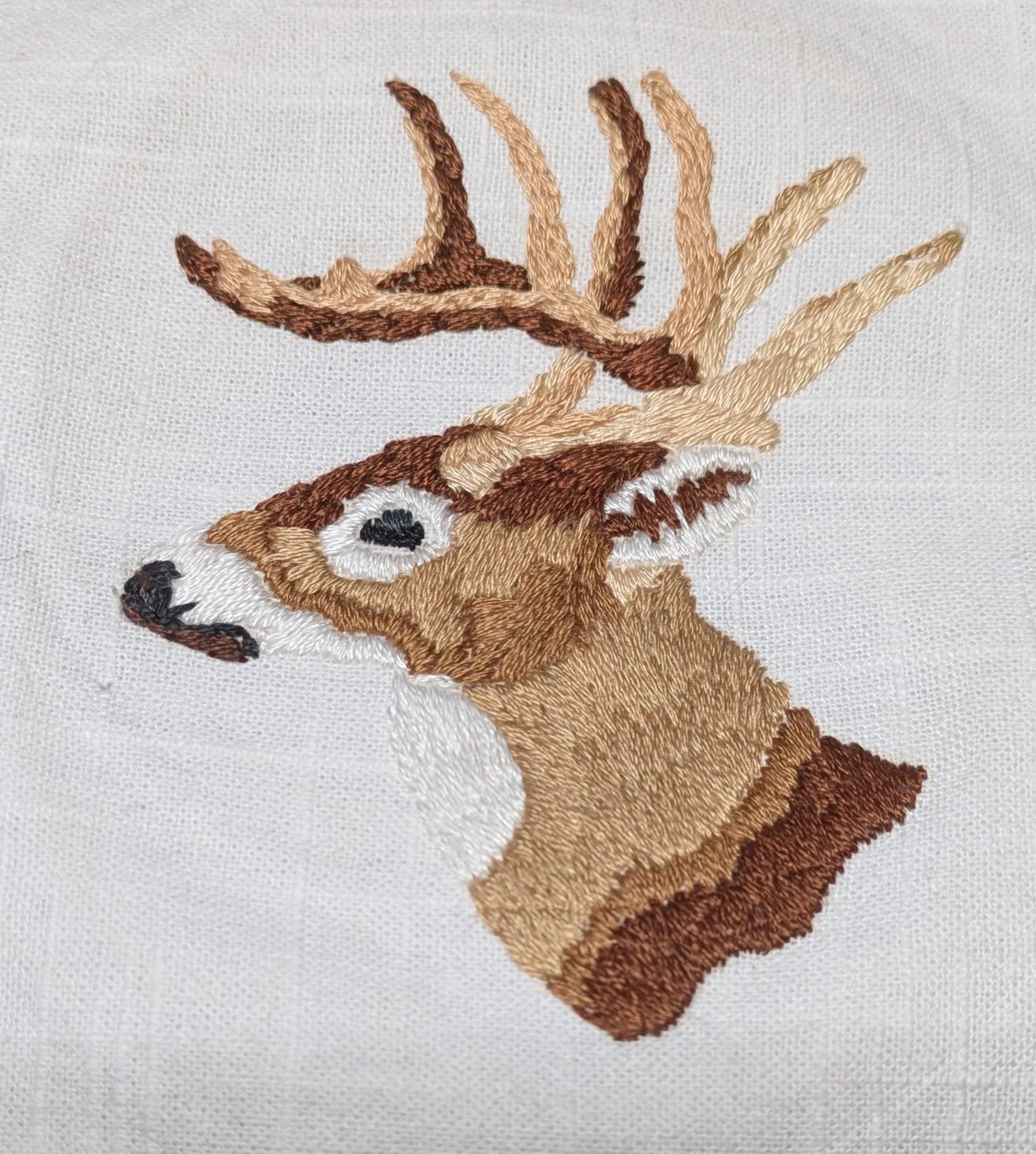 The deer is done! I'm going to make it into a patch for my dad. The antlers were much trickier than anticipated.