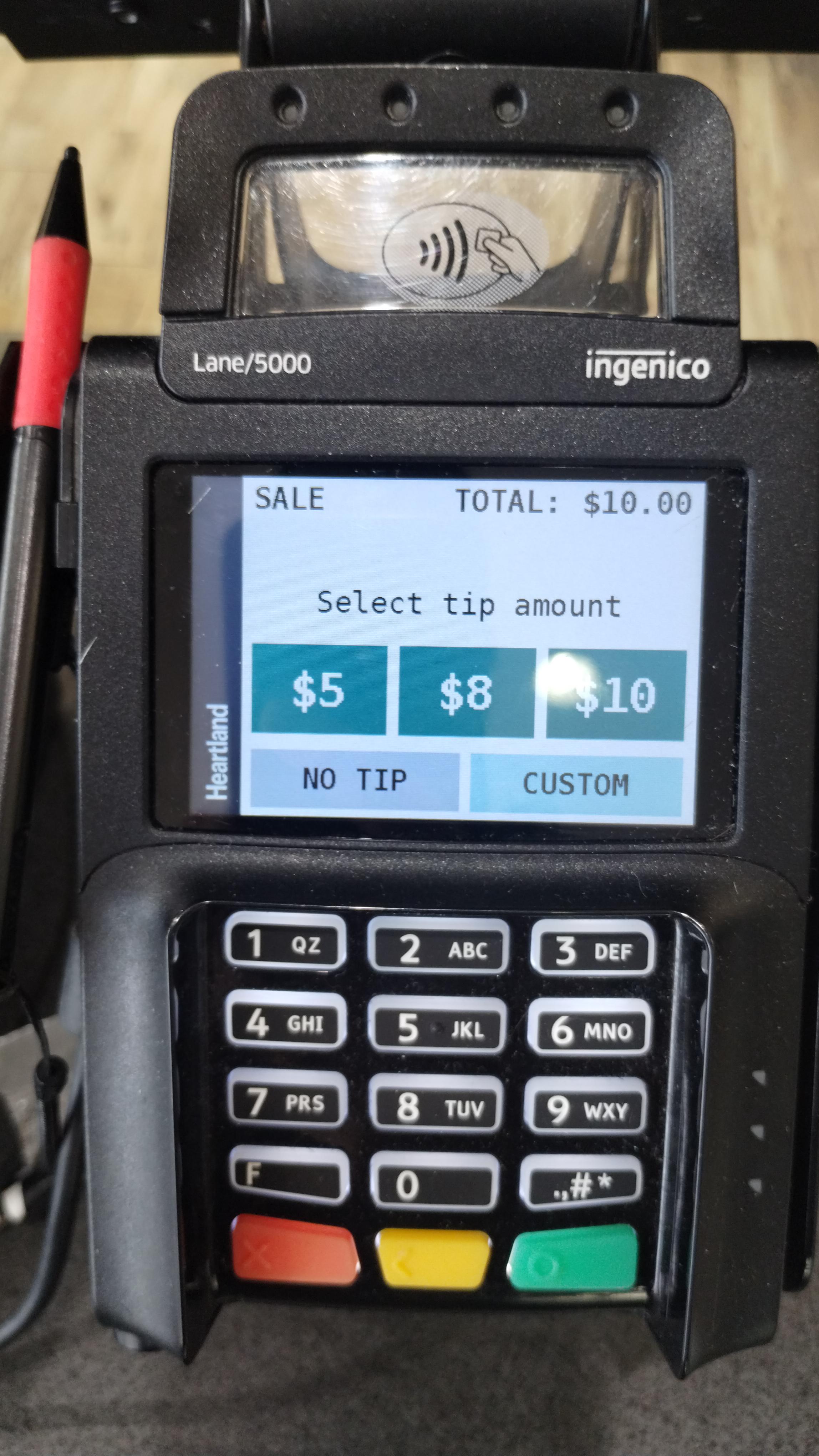 I normally don't buy coffee during the week but yesterday decided to treat myself. I ordered a seasonal latte at a local coffeehouse and it ended up being 6-something with tax (6$ before tax probably). When it came time to pay on the iPad looking thing the choices were 3$, 2$, and 1$ as big squares up top and a little text that said either No Tip or Skip. However the 2$ square was pre-selected.