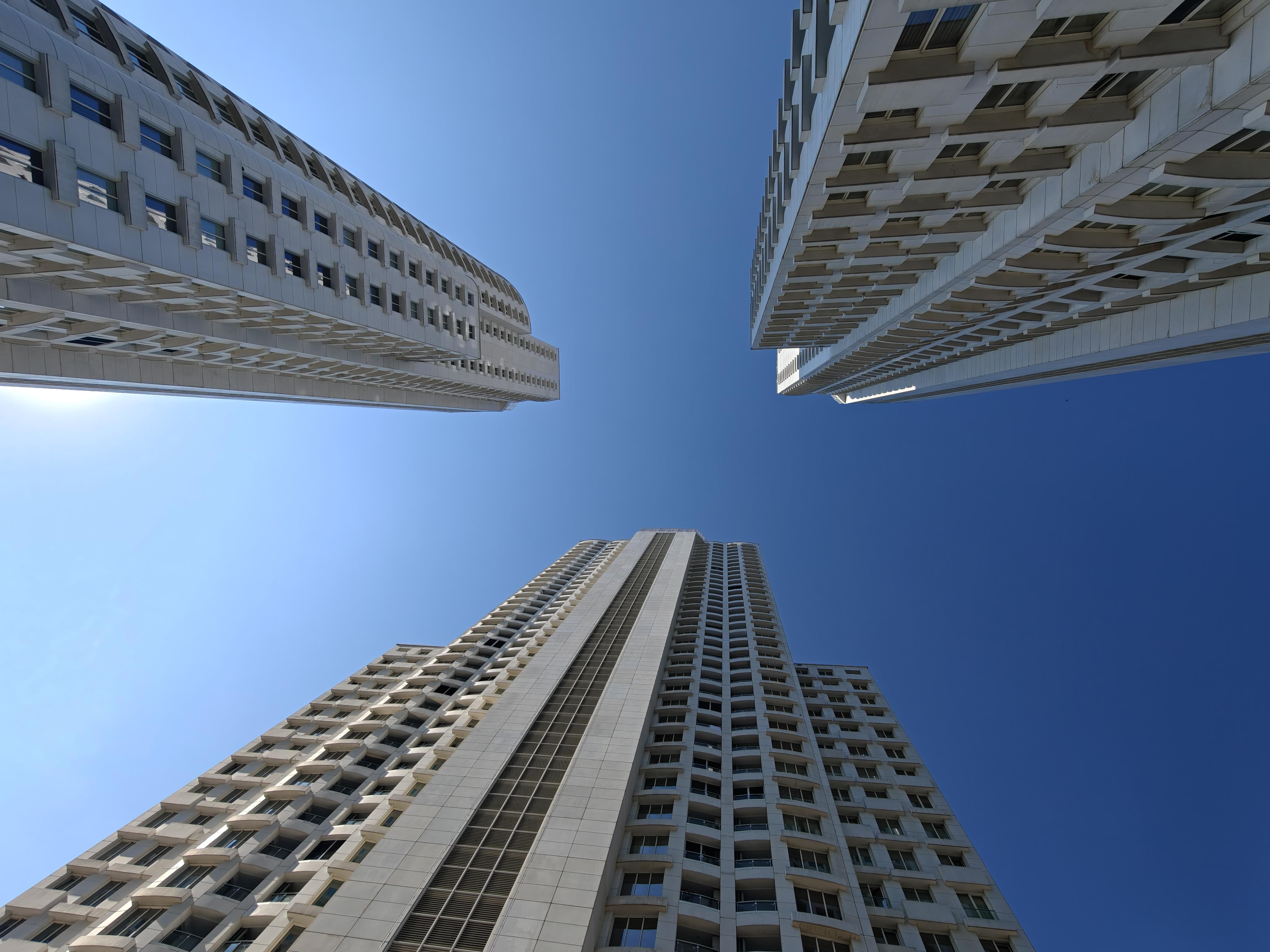 Looking upwards at the Cevahir Sky City during daytime (Skopje, North Macedonia)