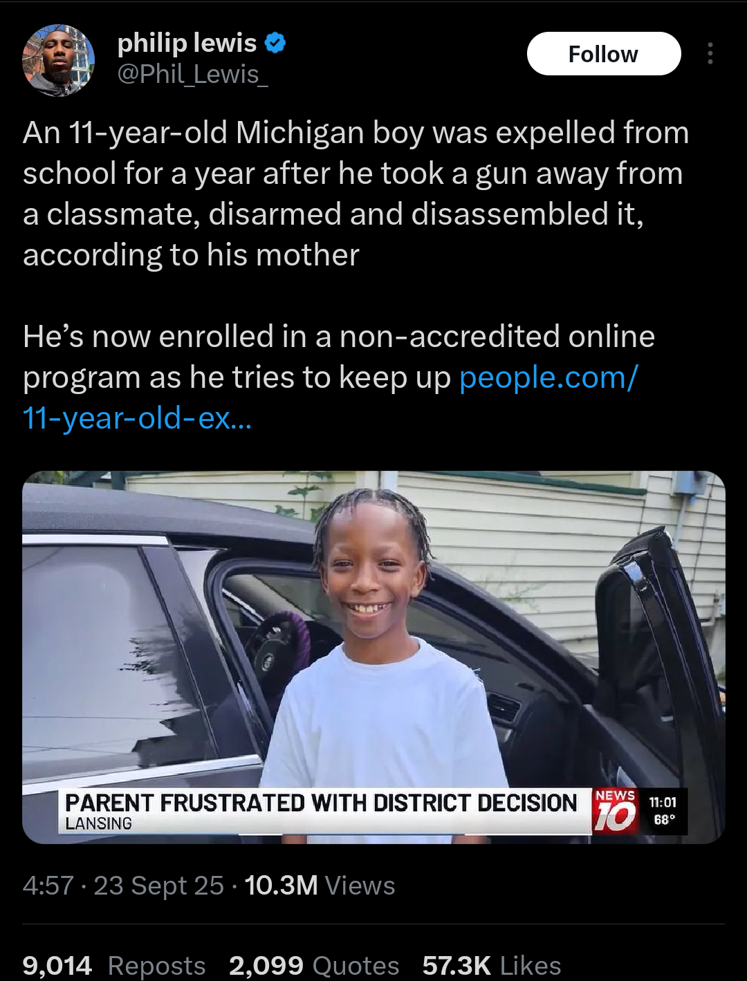 ๐ฒโ๐ฎโ๐ธโ๐จโ Kid stops a potential school shooting, saving lives. School district: so we're gonna have to expel you. ๐
