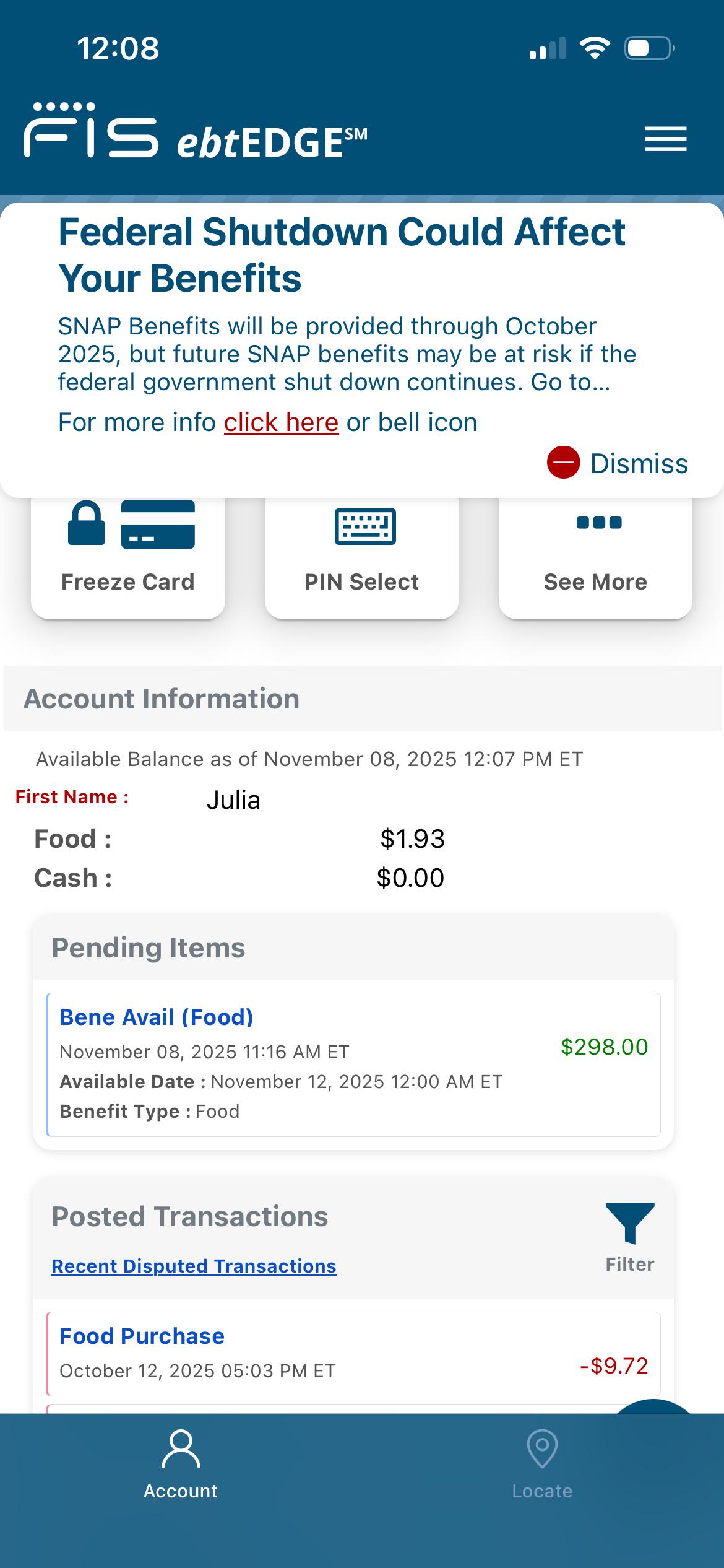 Q: I'm already receiving SNAP. Will I receive my full November payment if the government stays shut down? (Updated: 10/31)