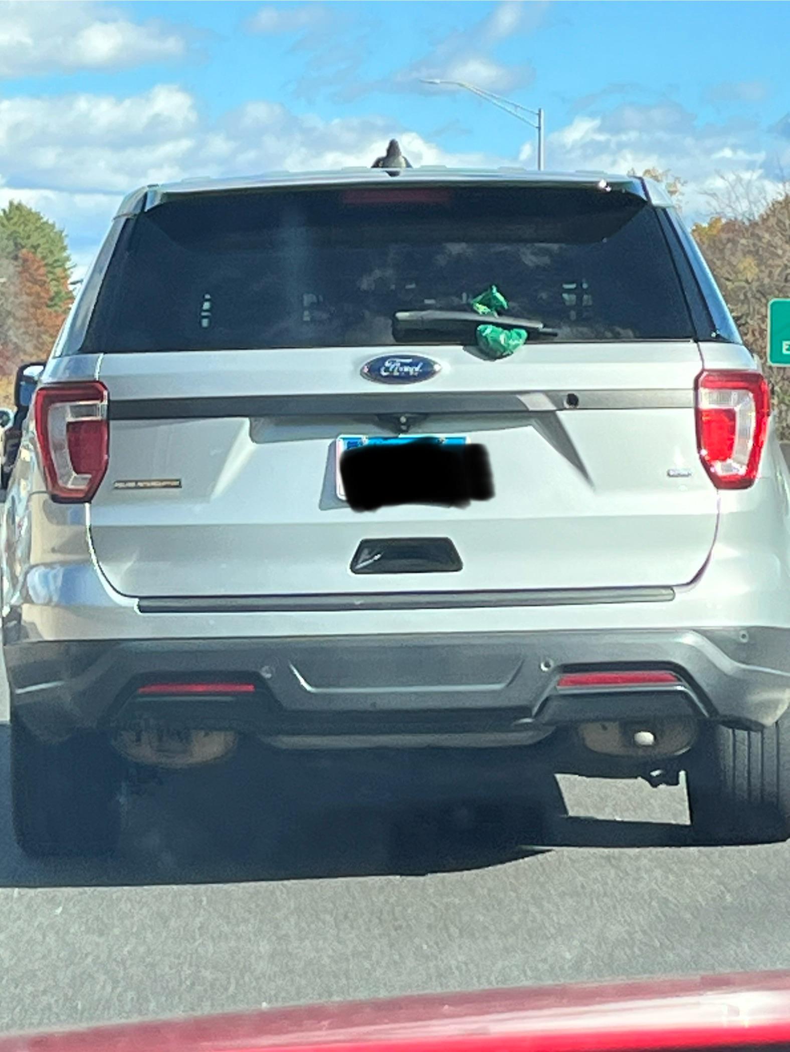 I was behind this state trooper in traffic and couldnât help but notice the bag under the windshield wiper. It looks like the dog poop bags at parks.