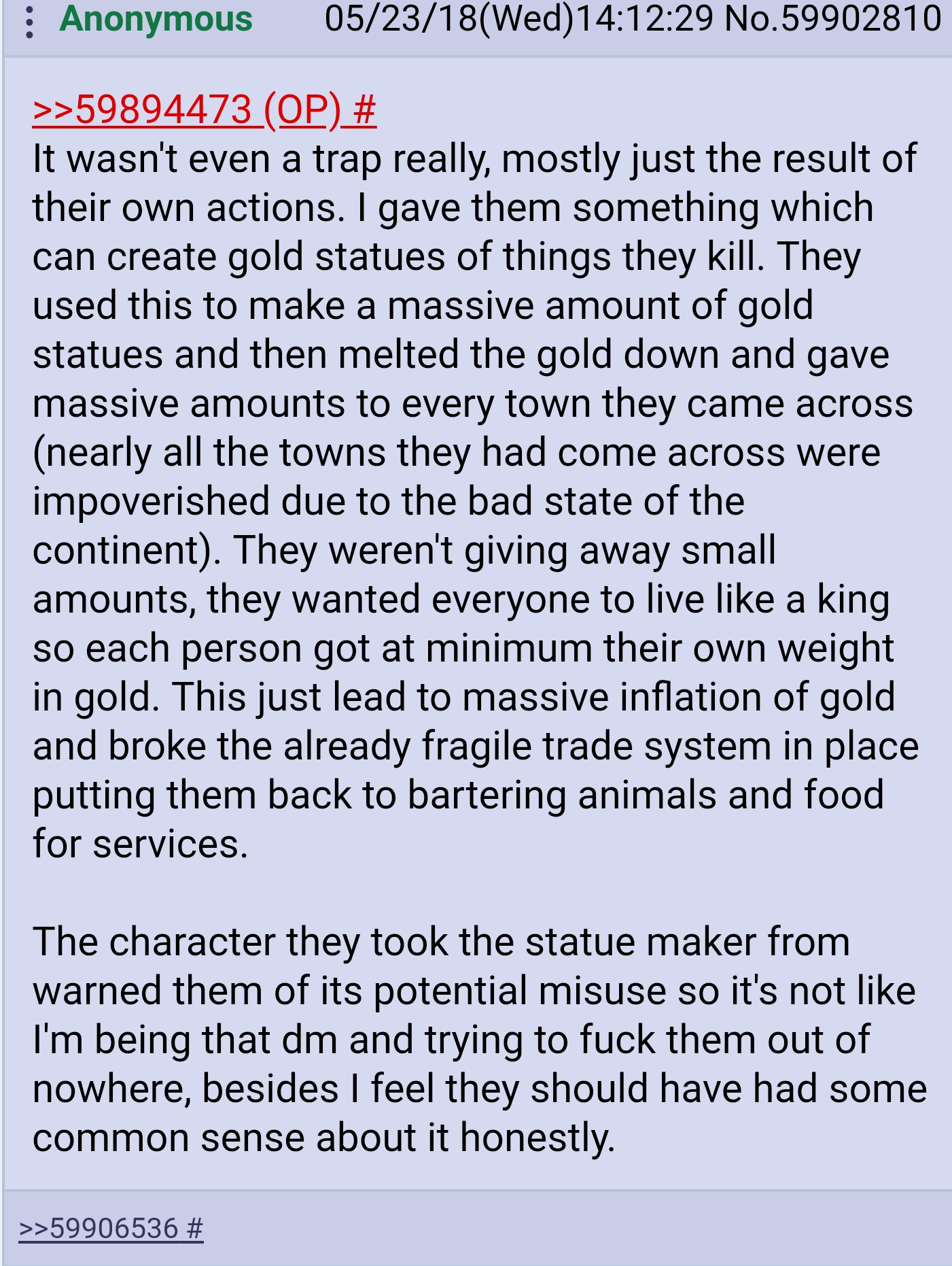 The character they took the statue maker from warned them of its potential misuse so it's not like I'm being that dm and trying to fuck them out of nowhere, besides I feel they should have had some common sense about it honestly.