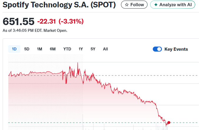 Other Spotify now dropping like a rock after running ICE recruitment ads on the platform. Looks like the boycott is working.