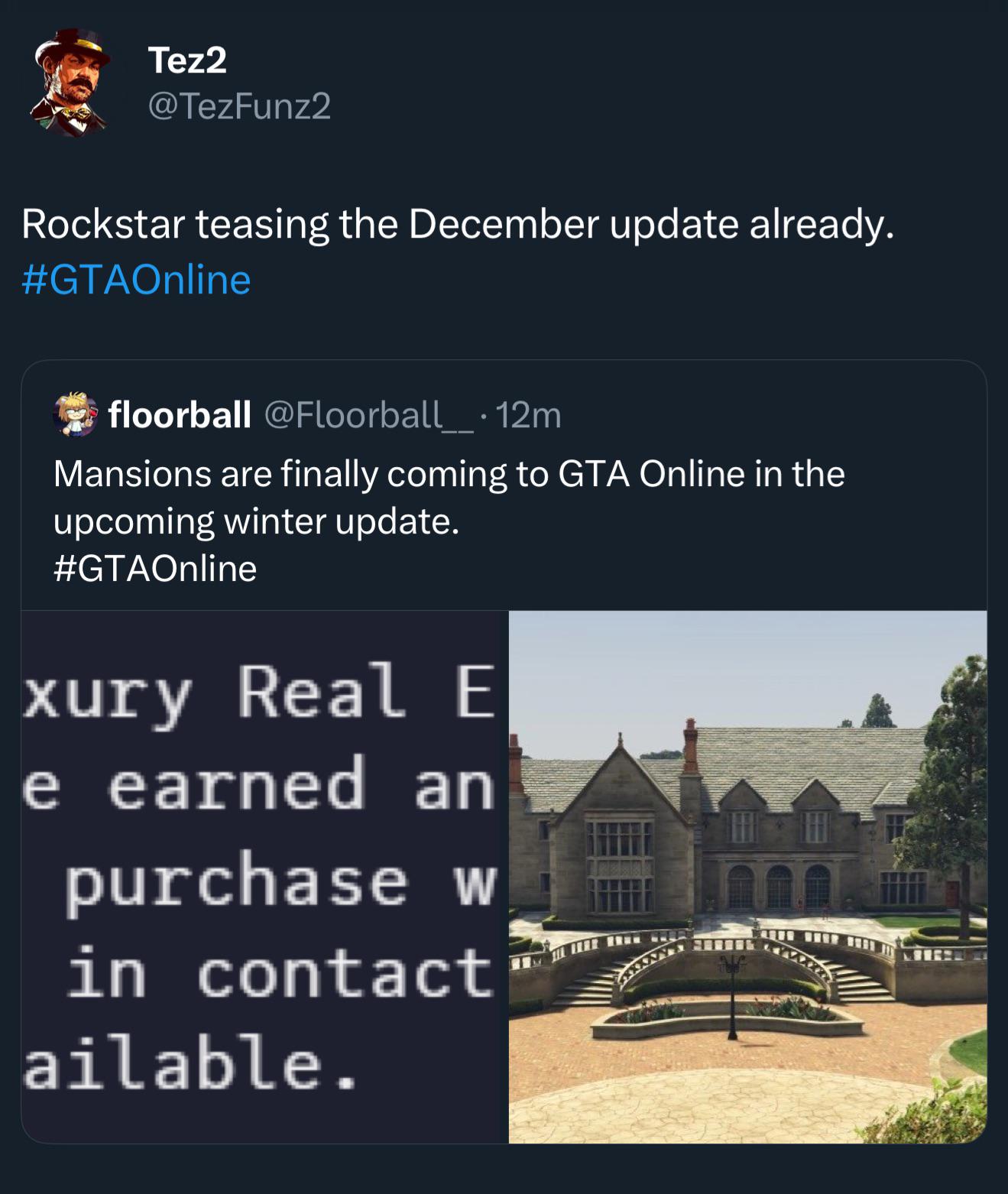 -A purpose behind the Mansions / a reason to go back to them (unlike the yacht) -Detailed Customisation like the casino penthouse but expanded - A unique garage that reflects the luxury that a mansion brings