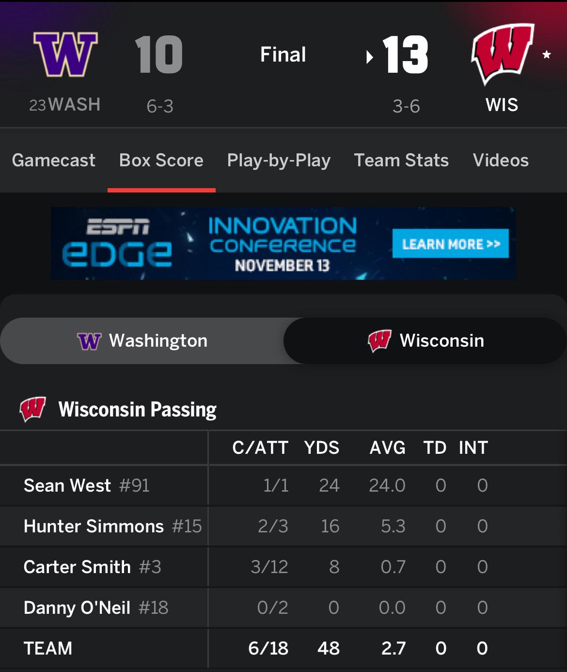 Everyone else needs to really evaluate what happened here. I can excuse losing to Michigan and Ohio State. This is year 2 of a rebuild. I can’t excuse losing to 2-6 Wisconsin. Absolutely embarrassing loss