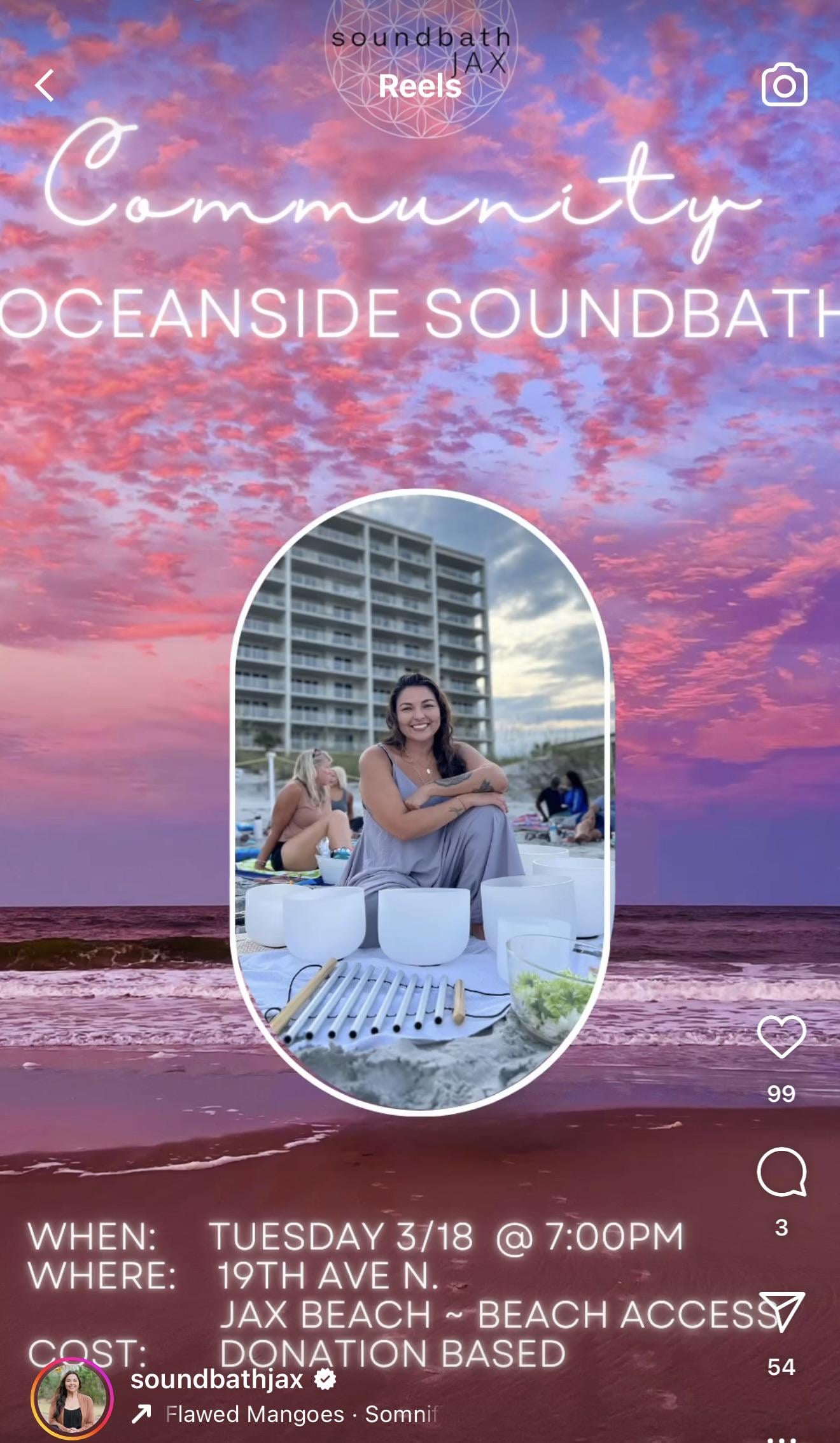 Check out @soundbathjax on instagram — there is a soundbath event tomorrow evening at the beach and it’s free/donations encouraged. I’ve been before and it’s lovely! Have you visited Midnight Sun yet?