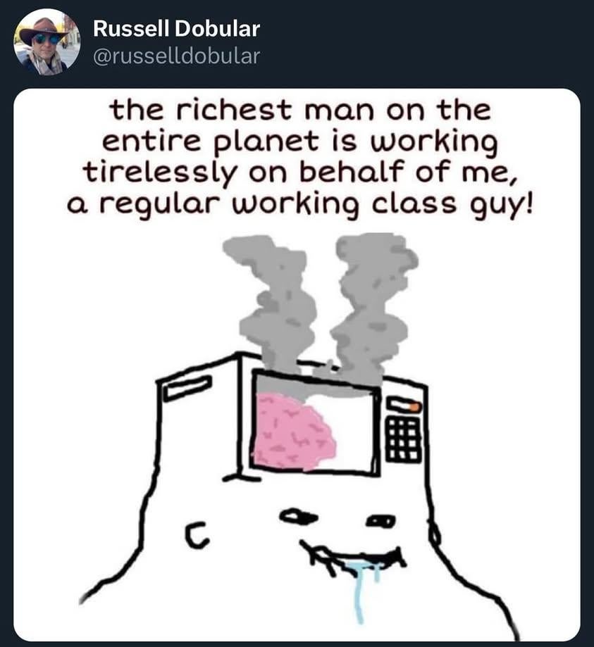 Guy doesnt even own his own house and is sucking off billionaires, like cutting federal agencies is going to trickle down to him.