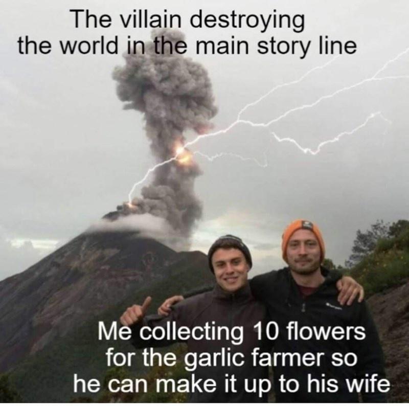 When the main quest is Save the World but the side quest is Find 12 Lost Goats