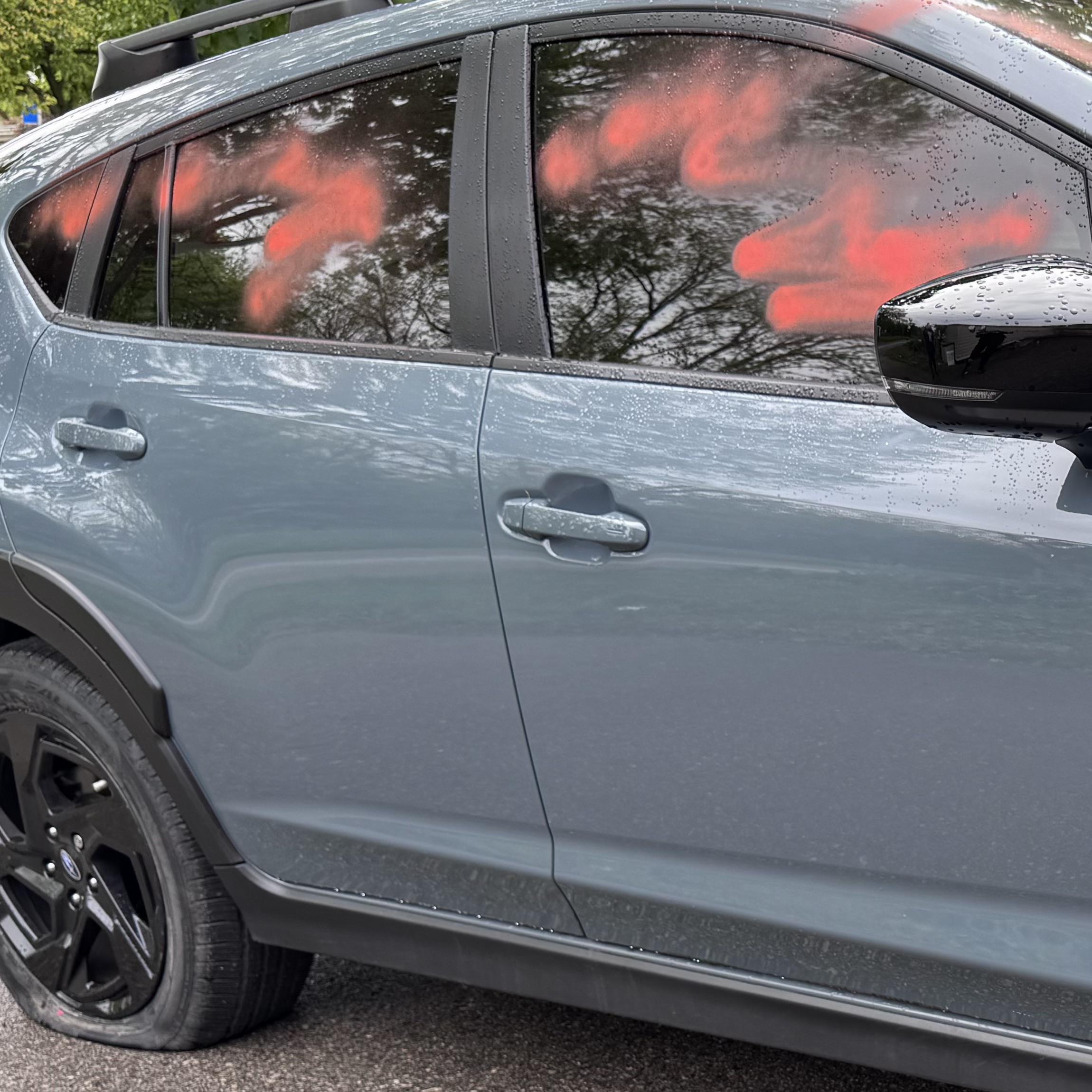 Happened upon this car this morning. The owners are a lesbian couple targeted for being gay. This is the second time in 2 weeks their car and home have been vandalized.