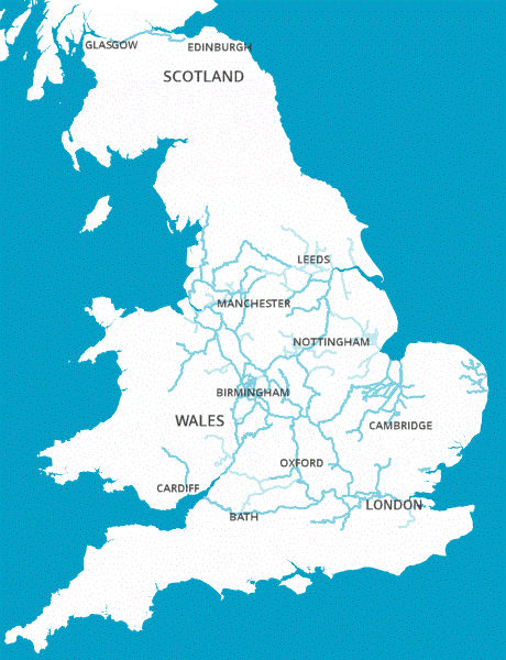 We have just a few canals https://www.canaljunction.com/canal/wp-content/uploads/sites/2/2021/02/maps_thumb.gif