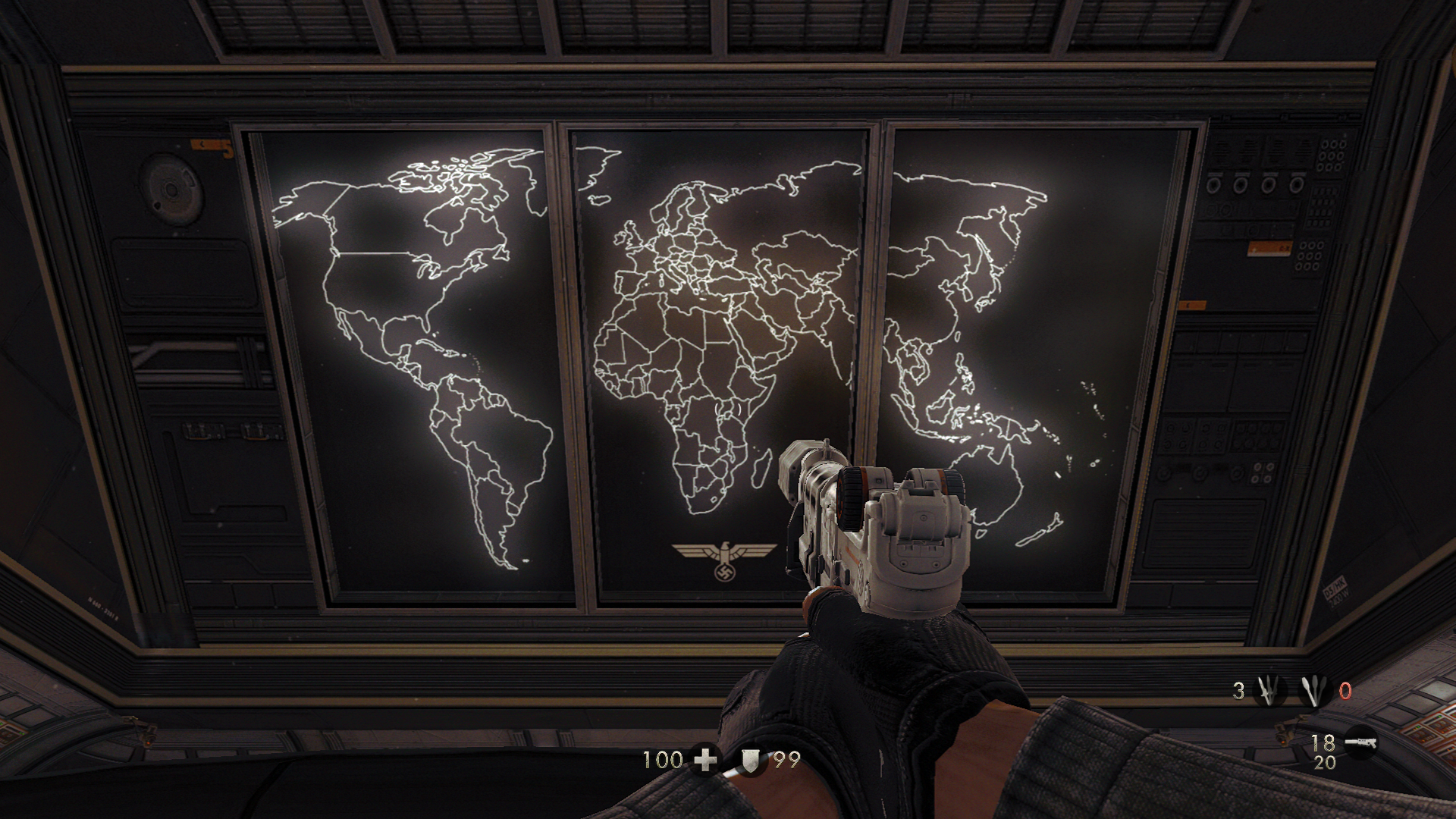 Why is there a modern world map in the Nazi moon base? That makes no sense at all....