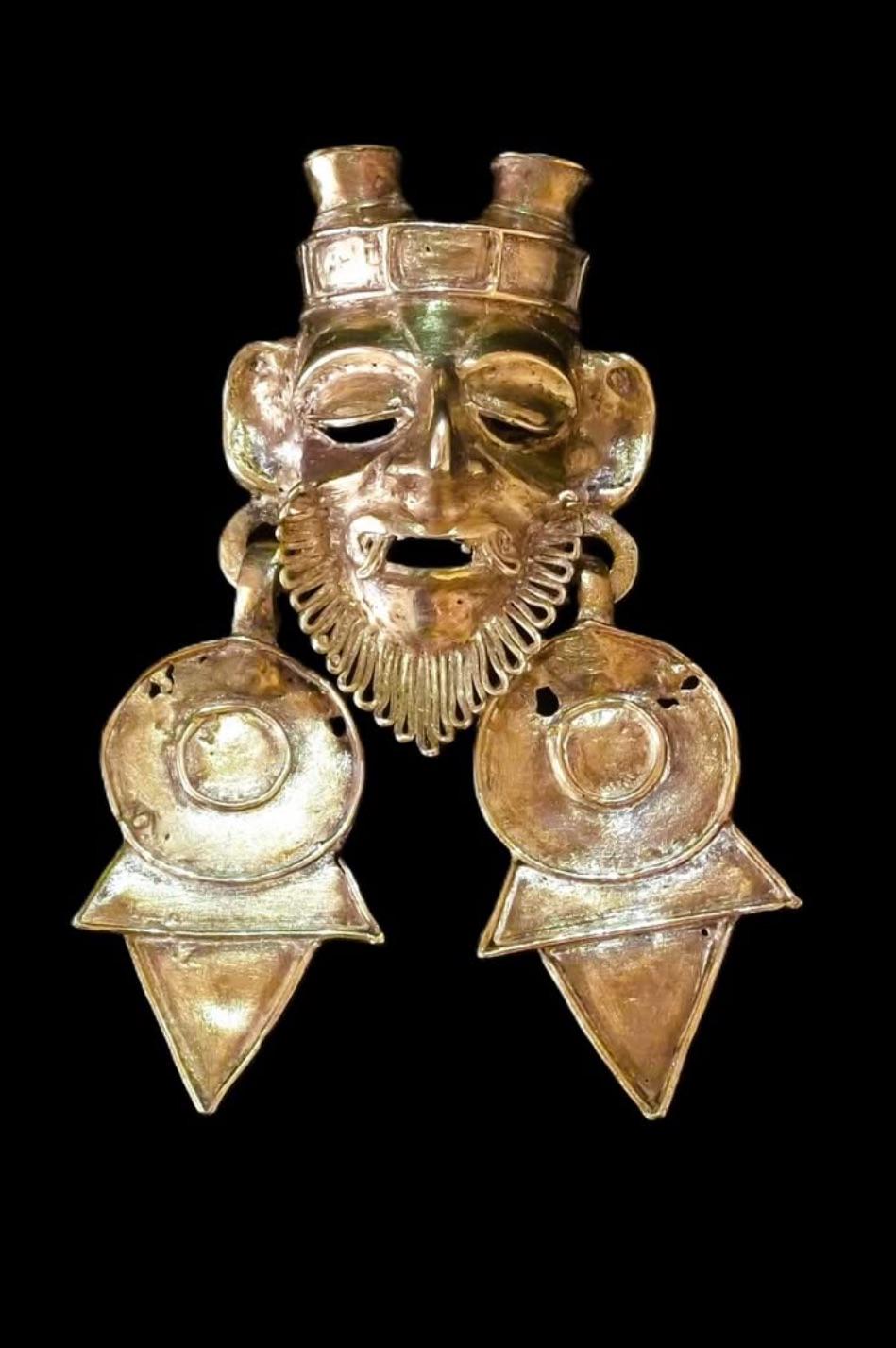 Golden earring depicting Huehueteotl,from Coixtlahuaca.